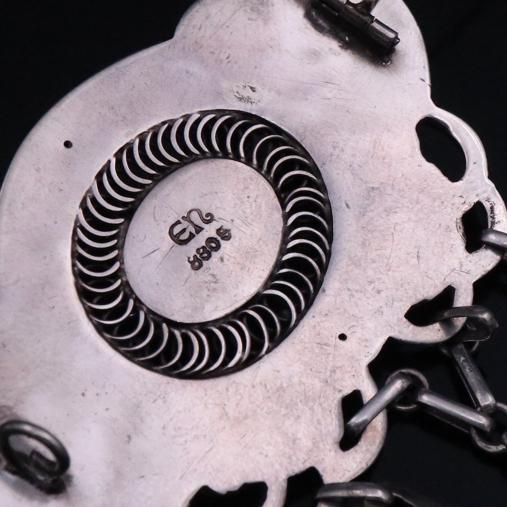 Evald Nielsen 1879 - 1958. Skønvirke Broche i sølv med månesten.