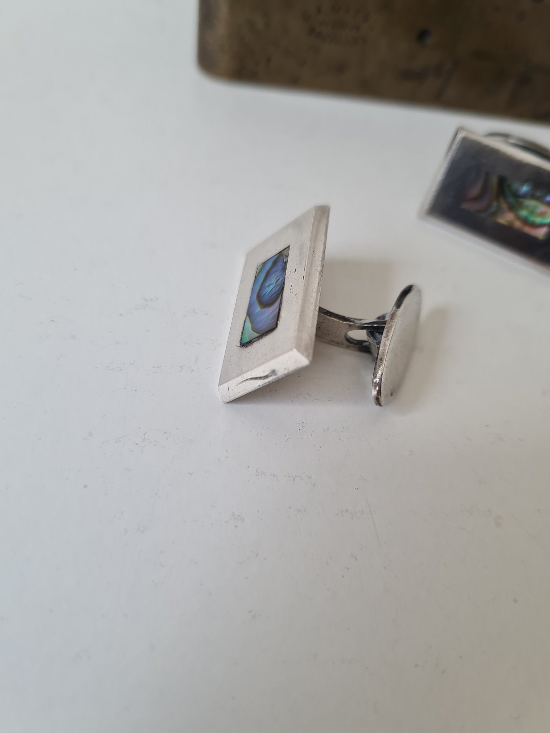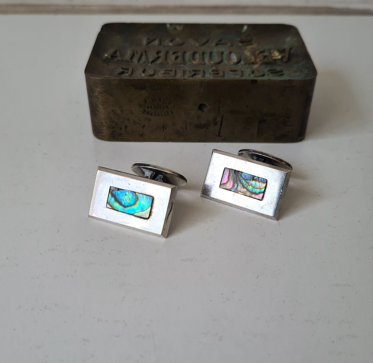 Pair of cufflinks in sterling silver adorned with abelone made by Willy H. Jacob Kromar