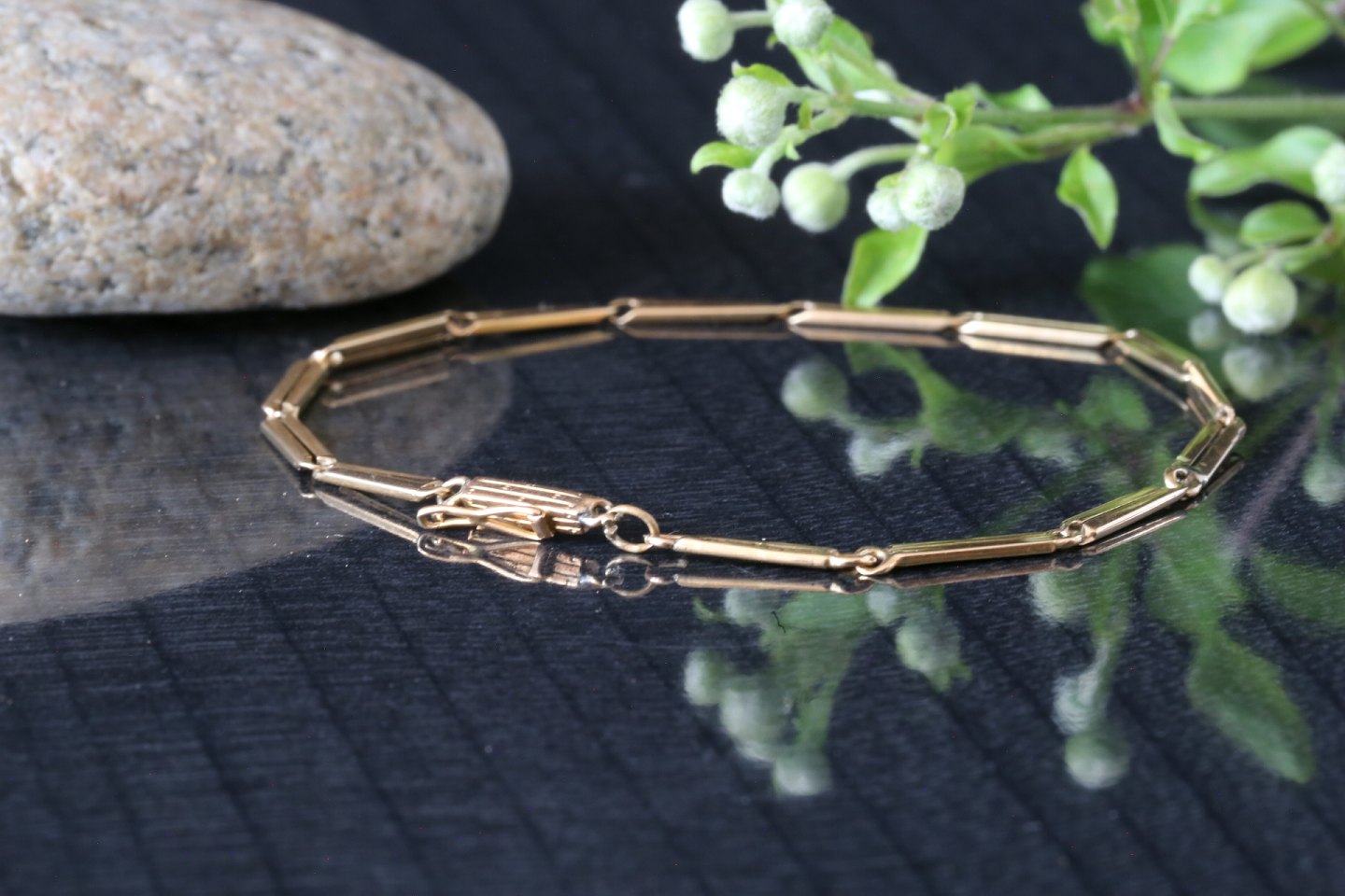 Beautiful and minimalist gold bracelet that is elegant and minimalist on the wrist. It is made of 14 carat gold, and with a box lock. The bracelet is thin and stylish, and can be easily combined with several other bracelets without it looking too violent.