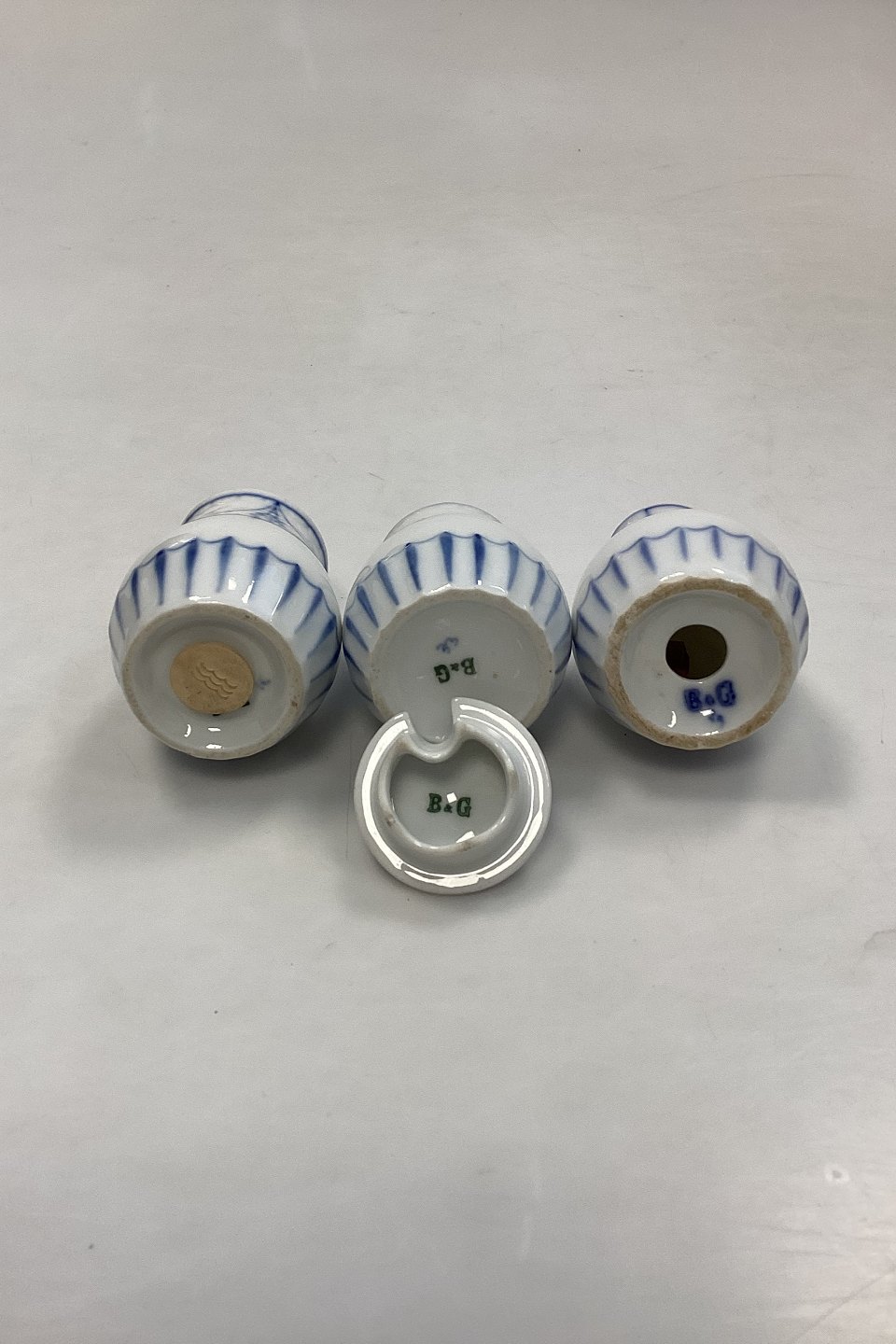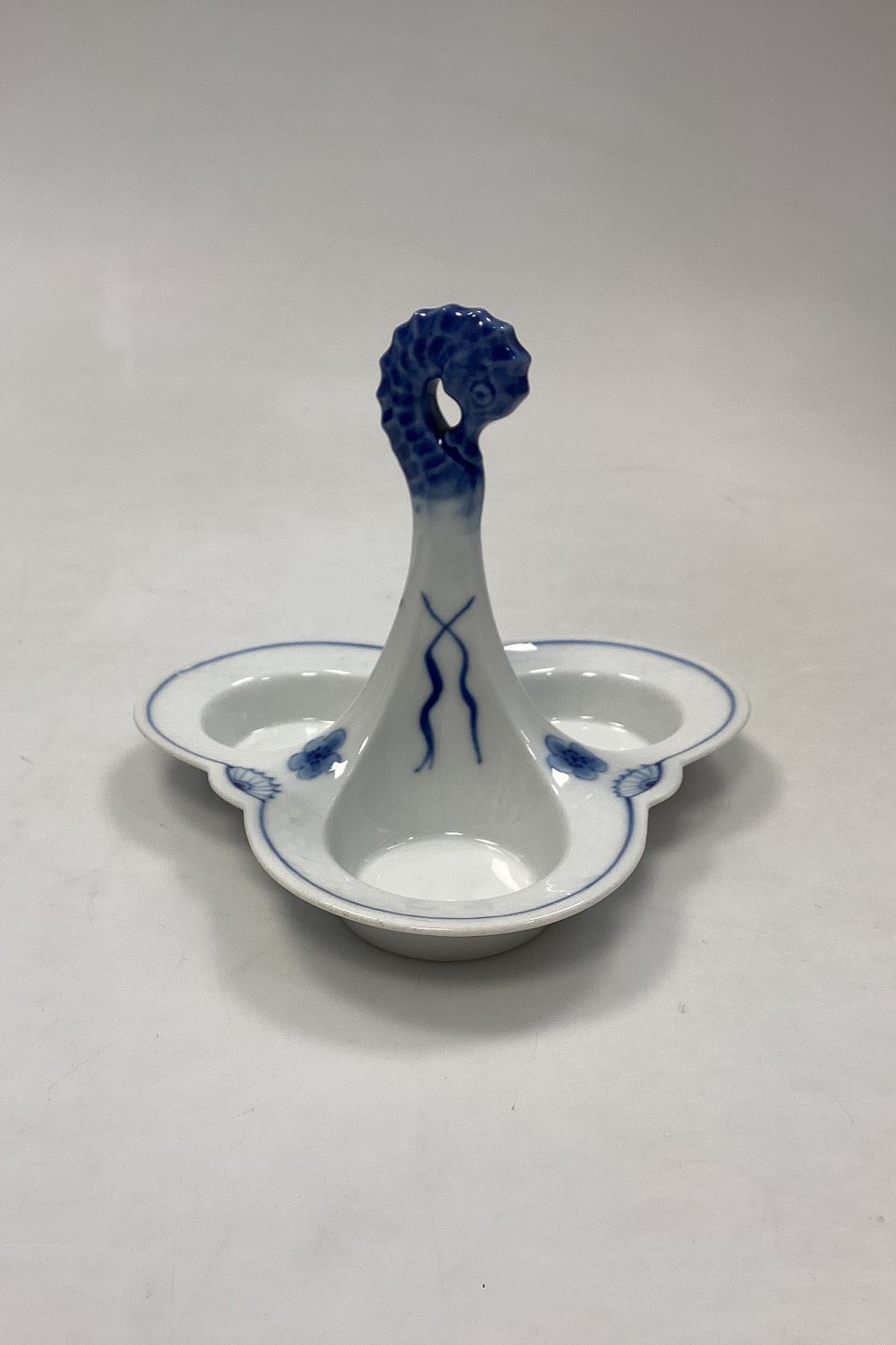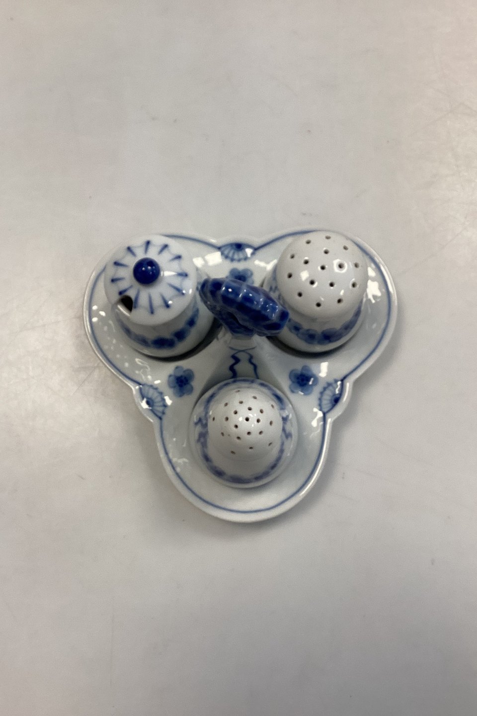 Bing og Grøndahl Empire Plat de ménage No. 52. Trekantet holder med søhestehank. Bærer sennepskrukke, salt -og peberbøsser.