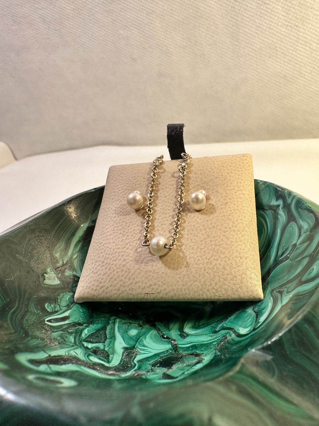 A set A gold bracelet 8k, stamp 333k with a gold pearl ring in gold. Bracelet L . 20 cm
