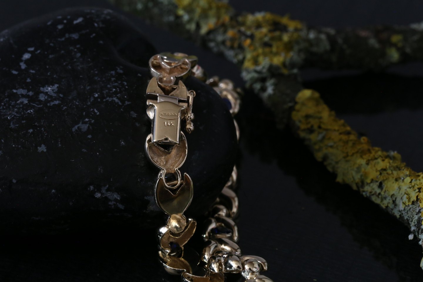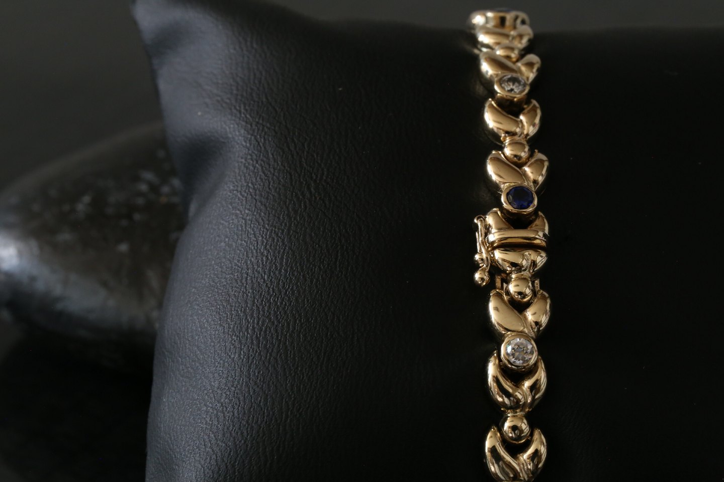Elegant and classic gold bracelet in 14 carat gold, with inlaid stones and box lock.