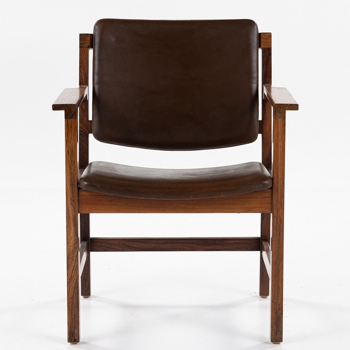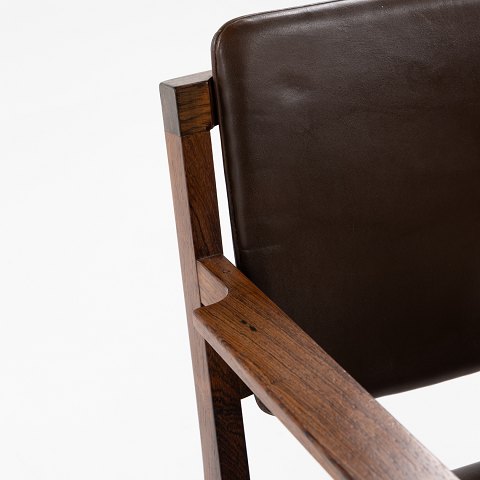 Børne-armstol i palisander og brunt læder. Formgivet c. 1969.