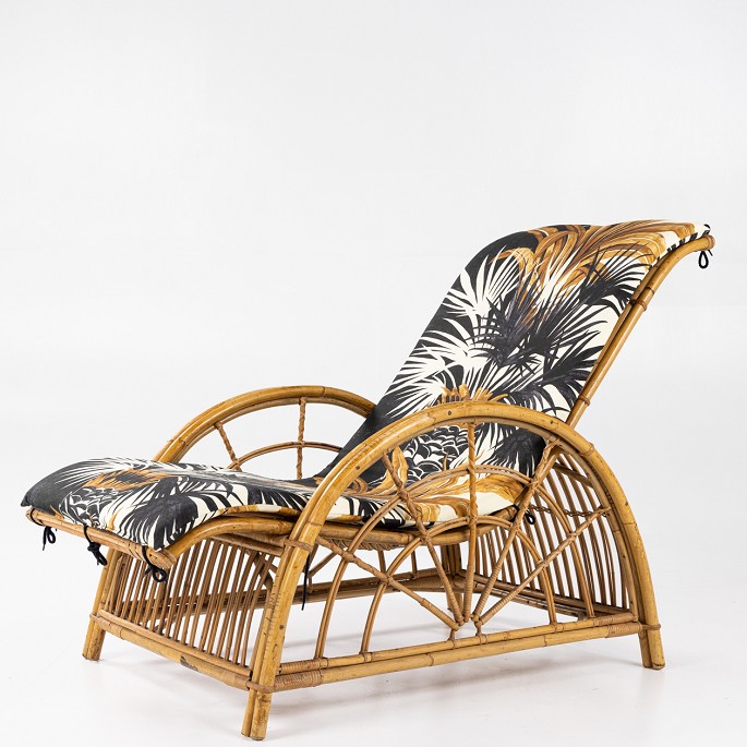 Lænestol i flettet bambus med hynde i Vainui (farve: Coco) fra Pierre Frey.