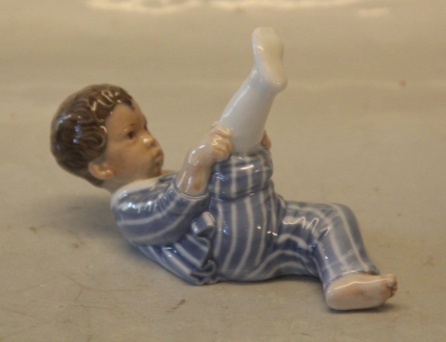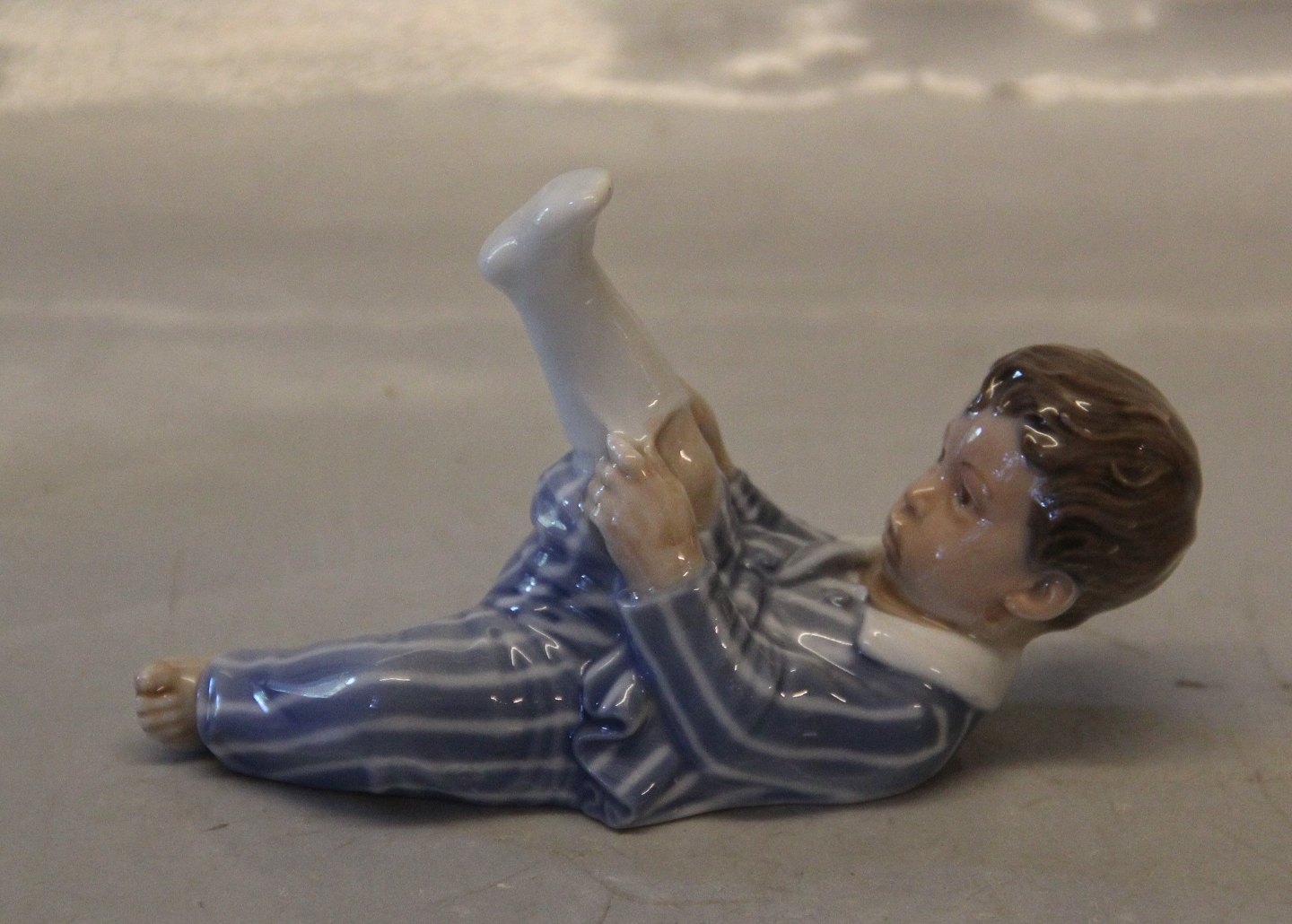 Royal Copenhagen 3580 RC Boy in blue pyjamas on back 6 x 15 cm