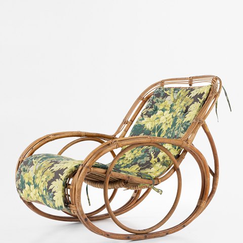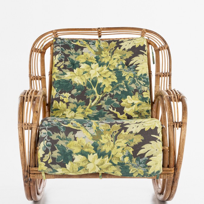 Gyngestol i bambus med hynde i Fontainebleau (farve: Maronnier) fra Pierre Frey.