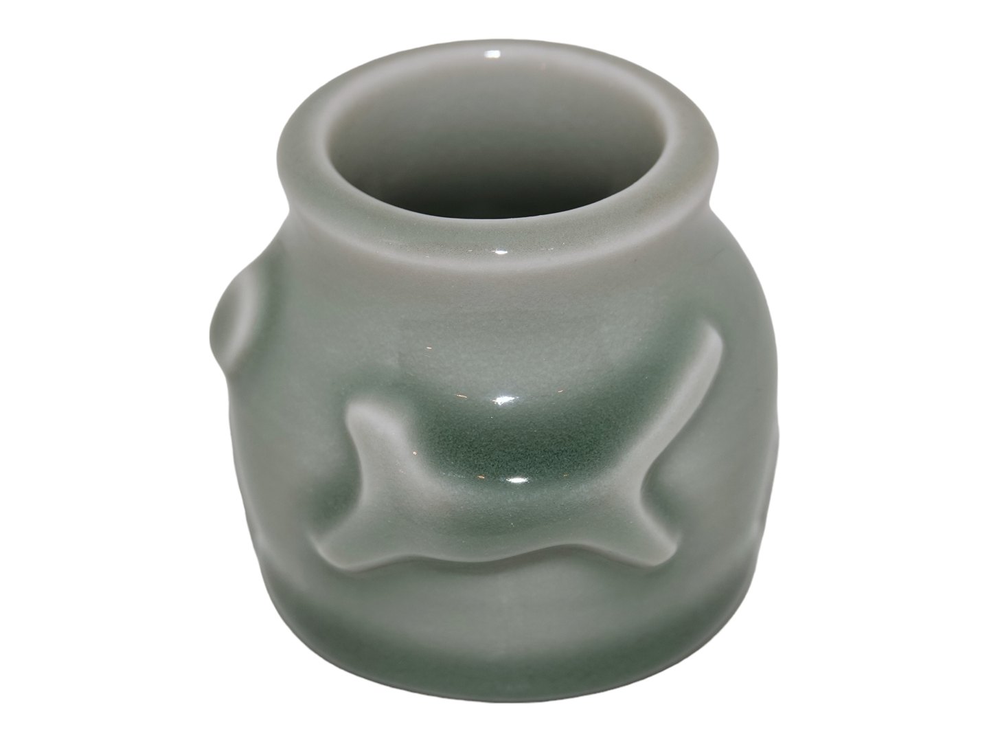 Royal Copenhagen Art Pottery, miniature vase in celadon glaze by artist Jorgen Mogensen.