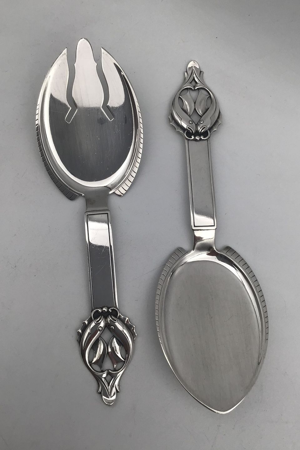 Grann & Laglye Art Deco Sølv Fiskeserveringsbestik(2) Måler 20.5 cm (8.07 inch)