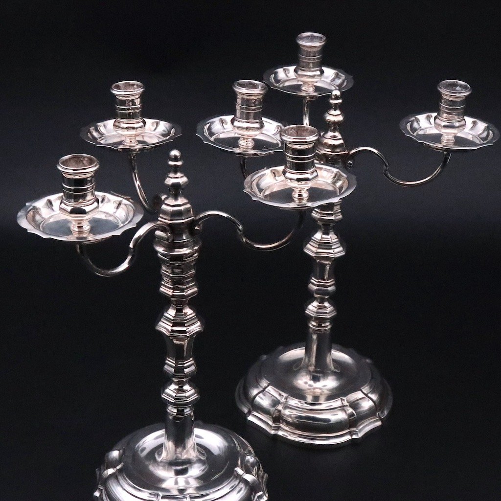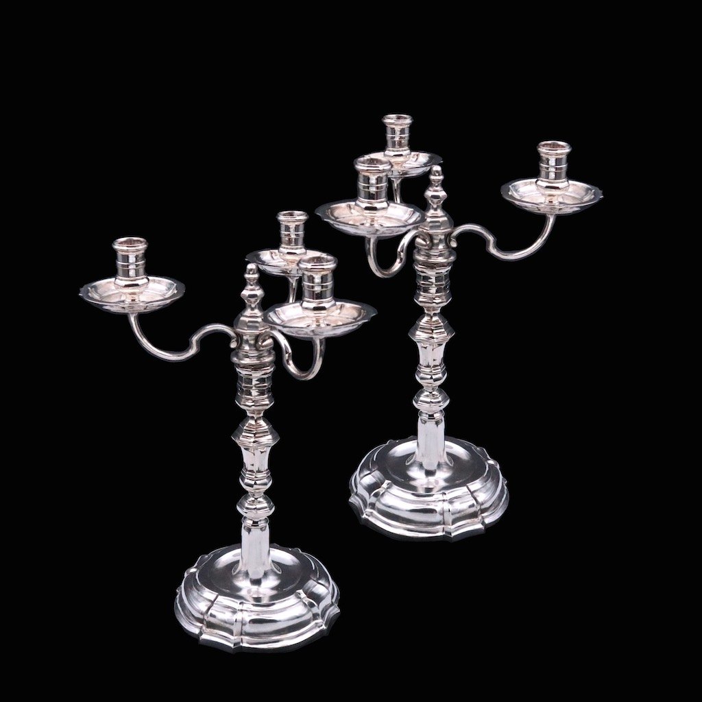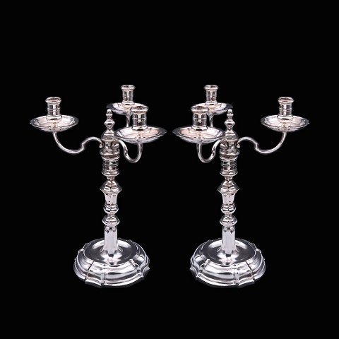 A. Michelsen. Et par tre-armet kandelabra i sølv - 1951.