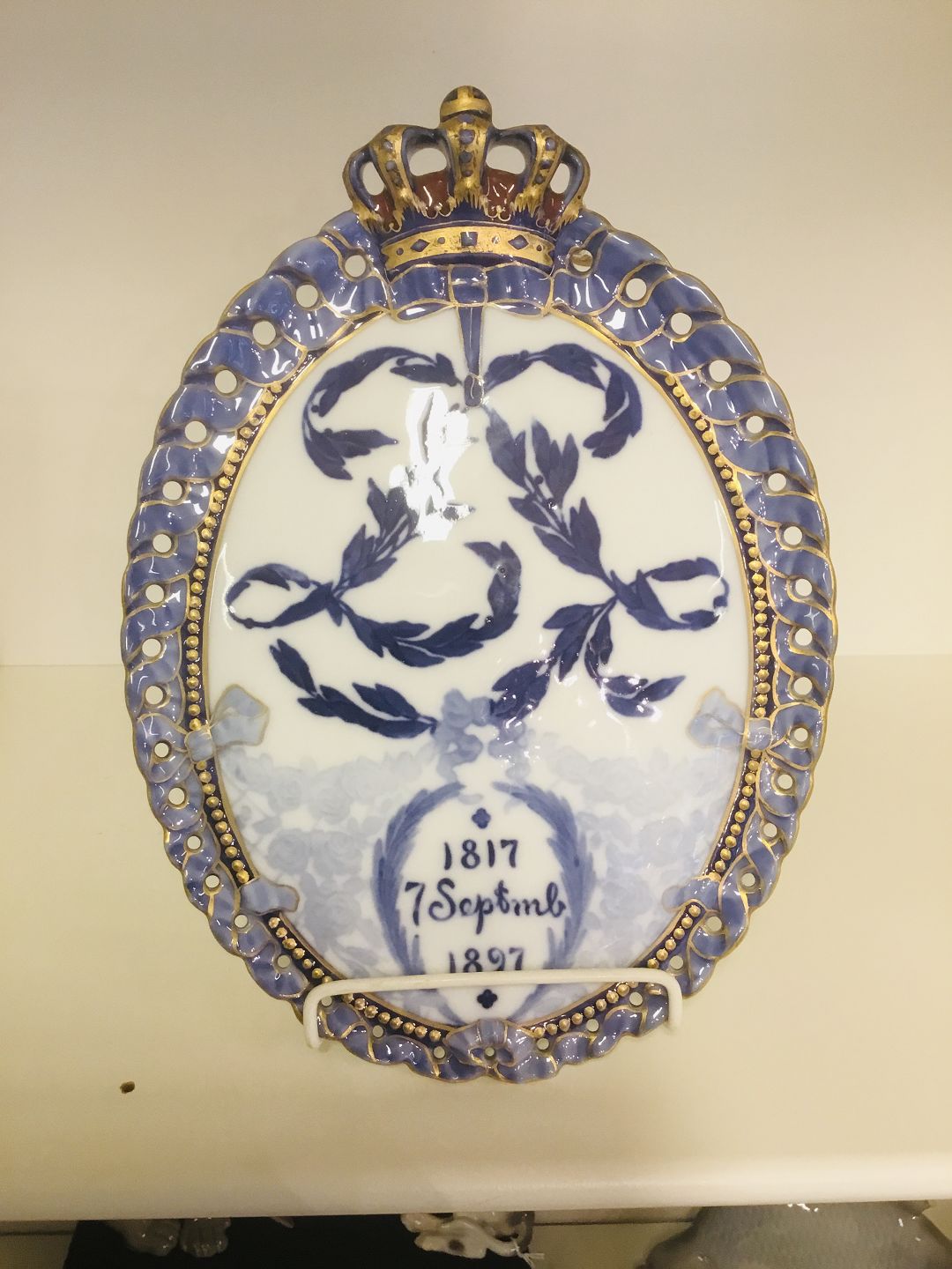 Mindeplatte med guld 1817 - 1897 Sept. Dronning Louises 80 års dag Design Arnold Krog 23,5 cm