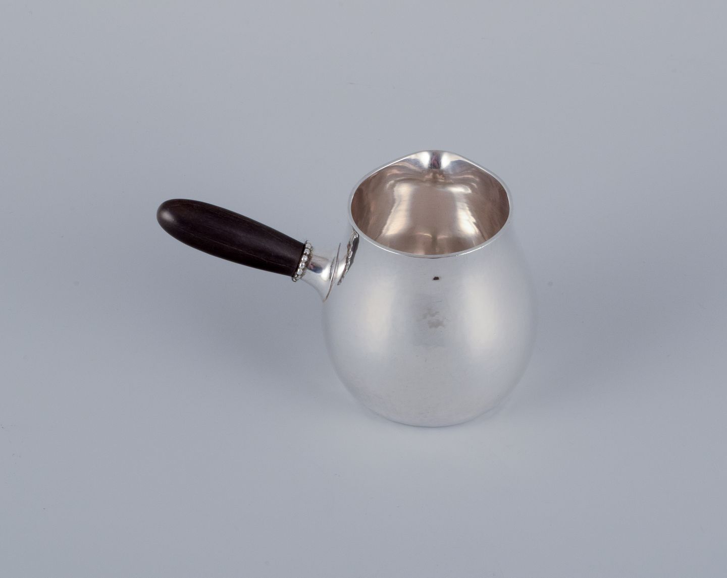 Georg Jensen flødekande i sterlingsølv med hank i ibenholt.