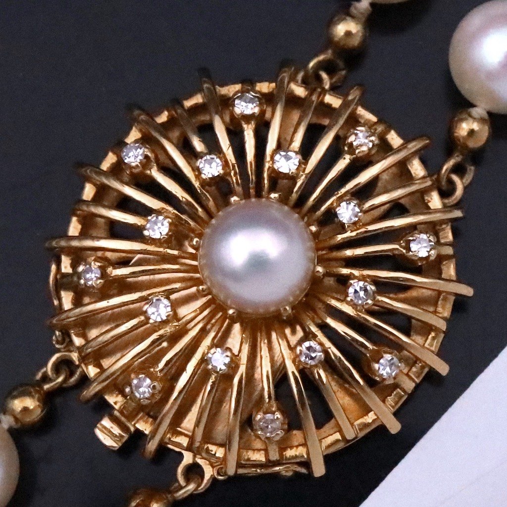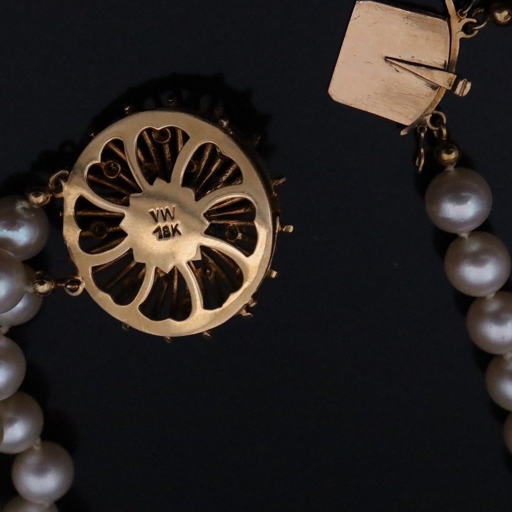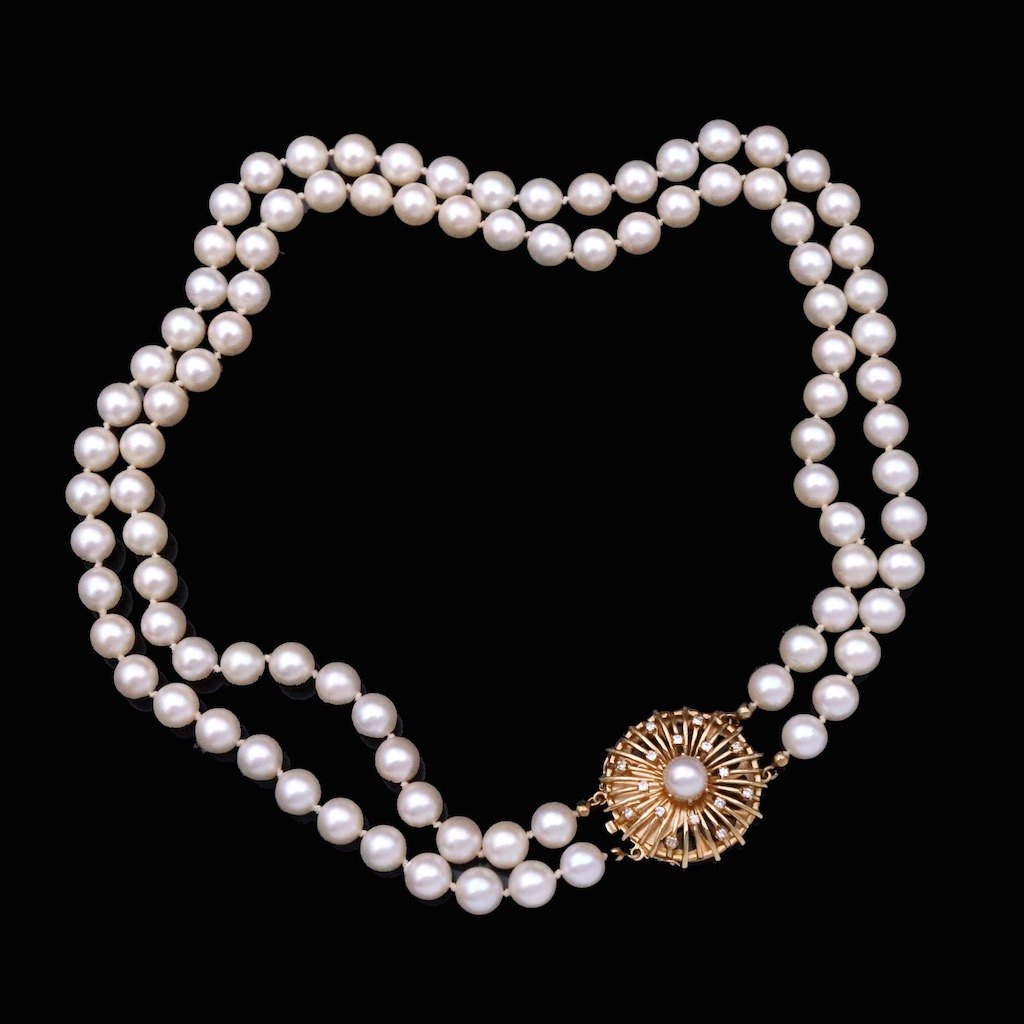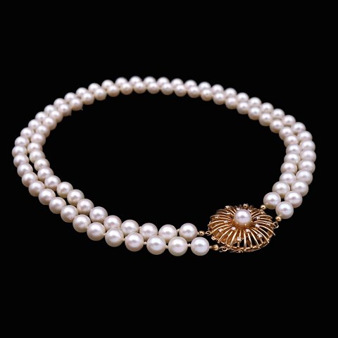 Viggo Wollny. To-radet perlekæde med lås i 18k guld med brillanter.
