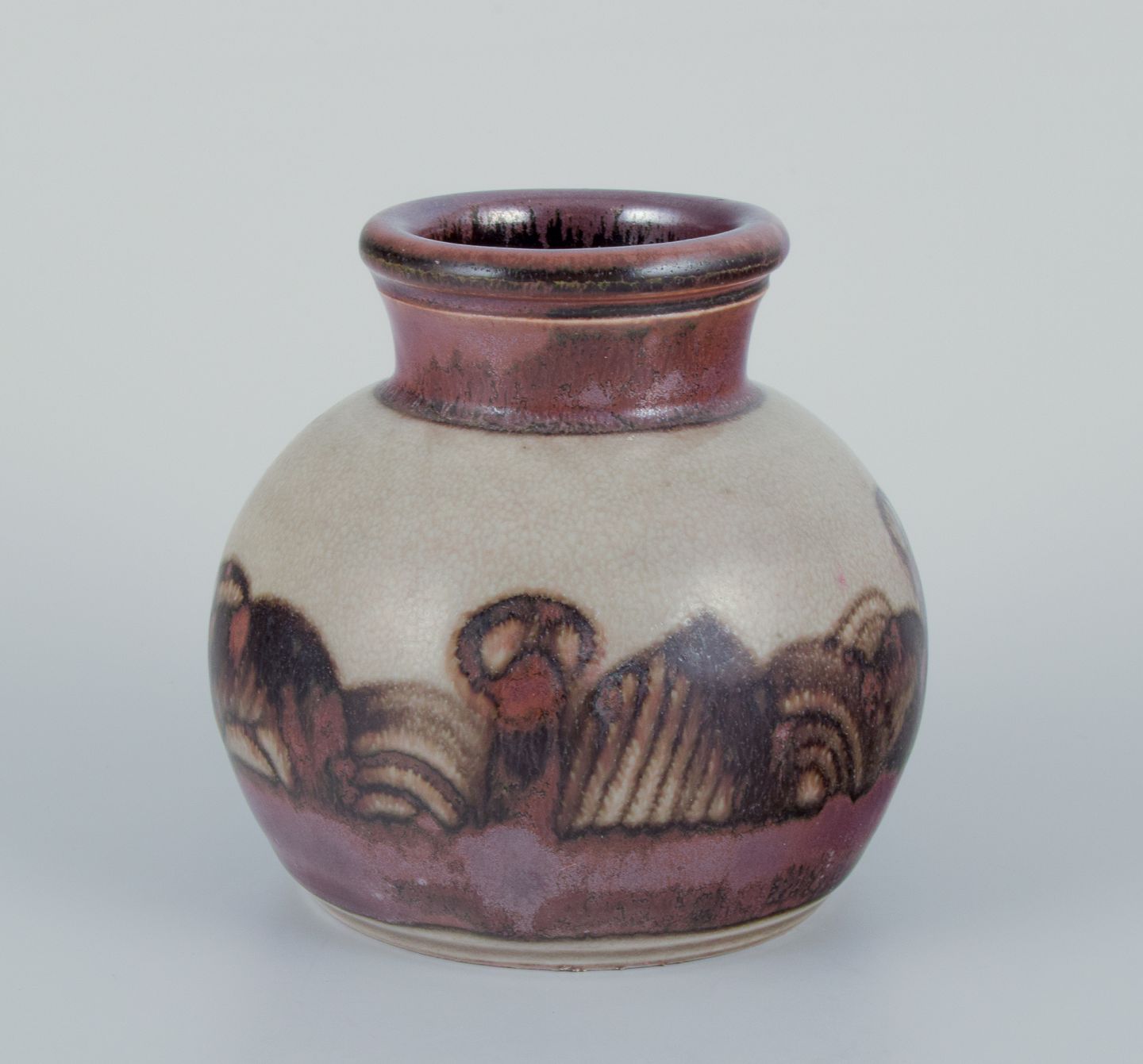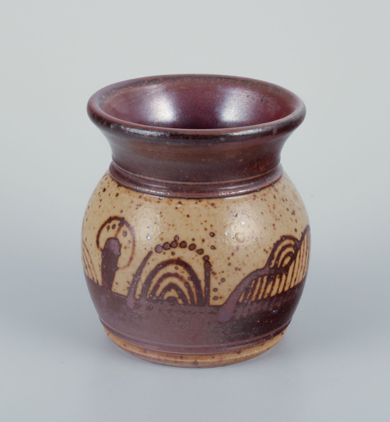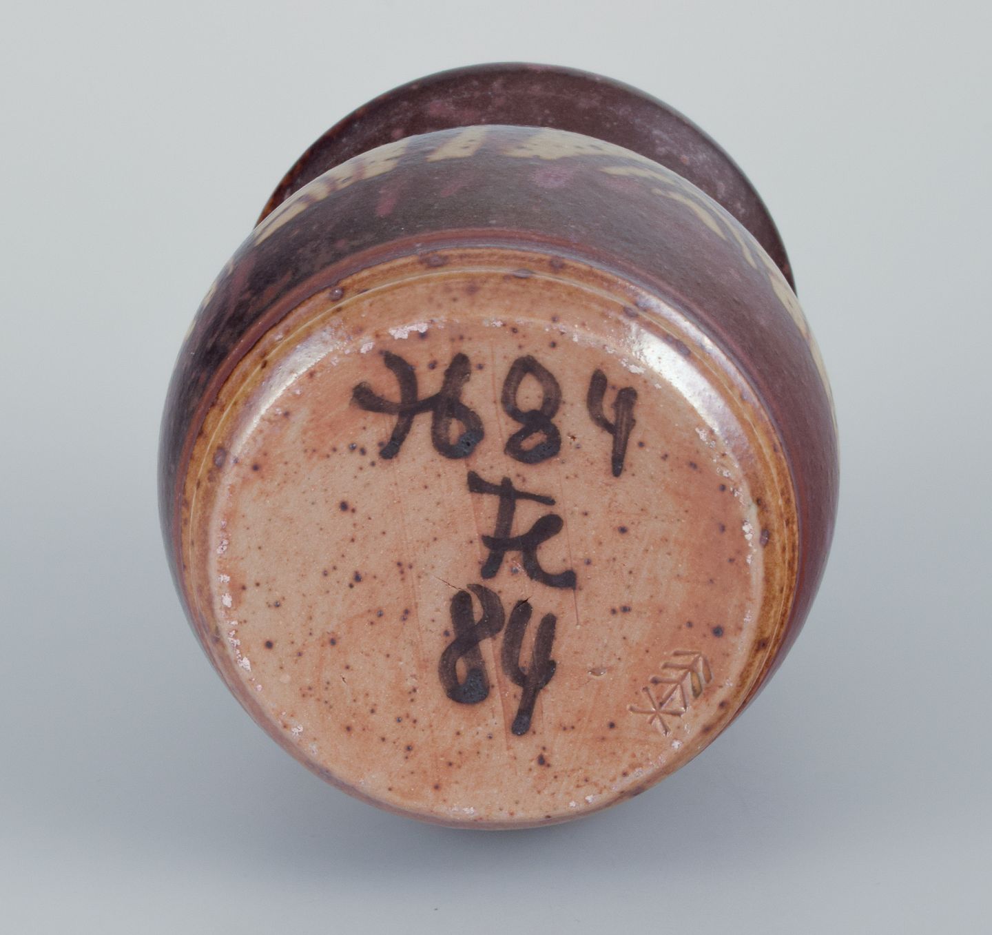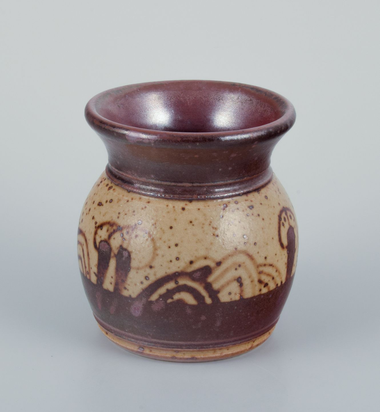 Elly Kuch (1929-2008) og Wilhelm Kuch (1925-2022). To unika keramikvaser. Glasur i brune og sandfarvet nuancer. Abstrakte motiver.