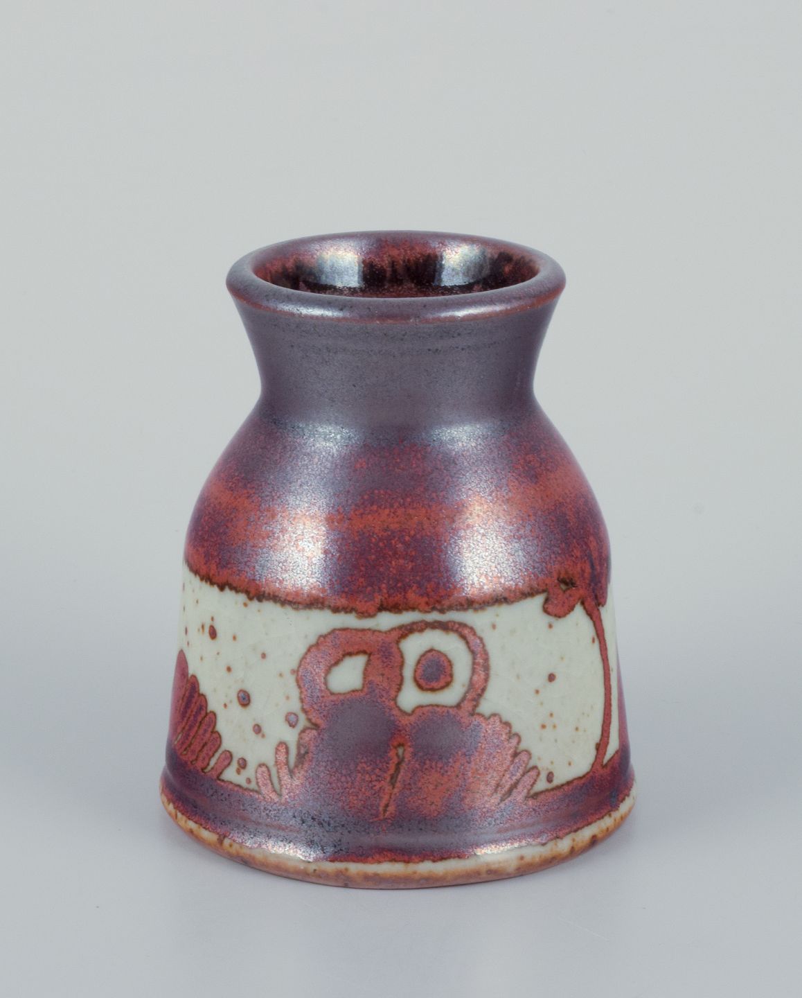 Den anden vase med glasur i brune nuancer. Abstrakte motiver.