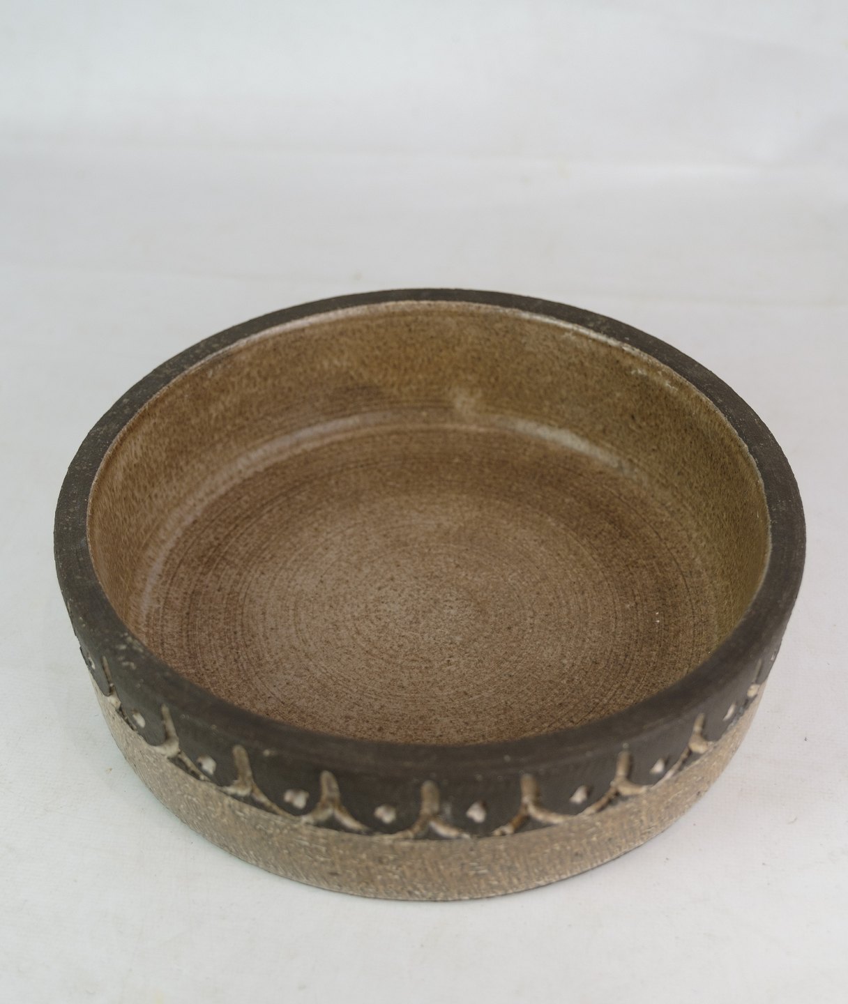 Dark brown ceramic bowl of lion moss ceramics from around the 1960s.