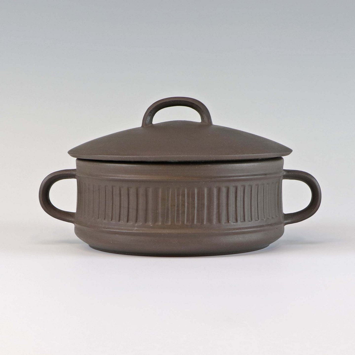 Boullionkop med 2 hanke og låg i stentøj fra stellet Flamestone