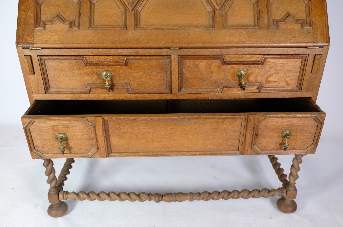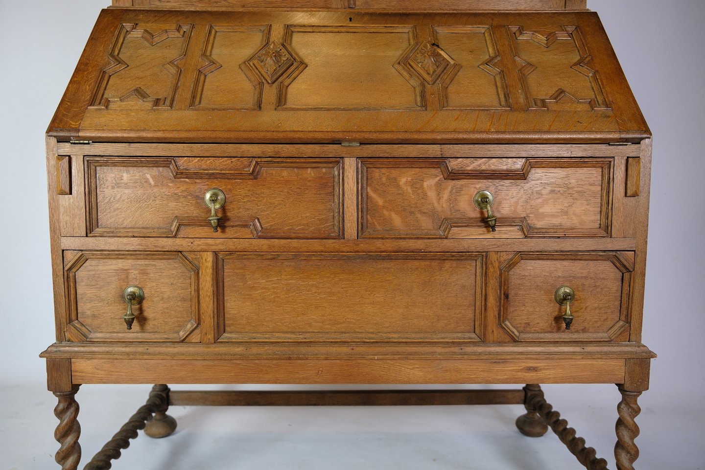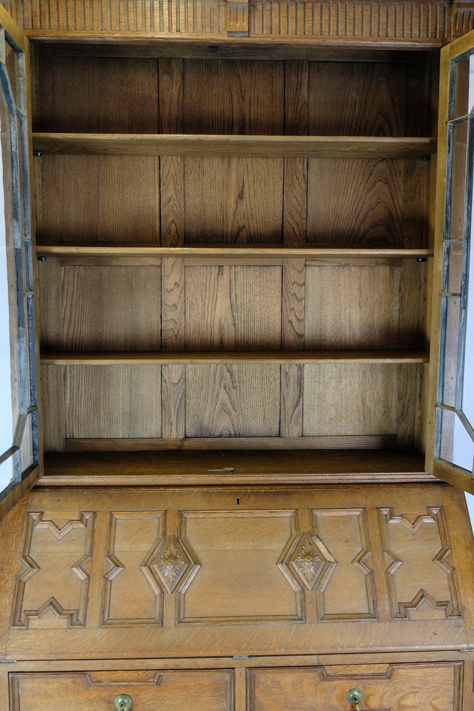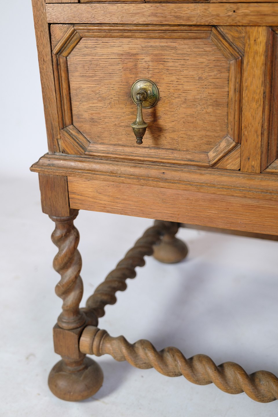 Chatol with upper cabinet in oak and glass doors and bars decorated with wood carvings originally from England, 1890s.