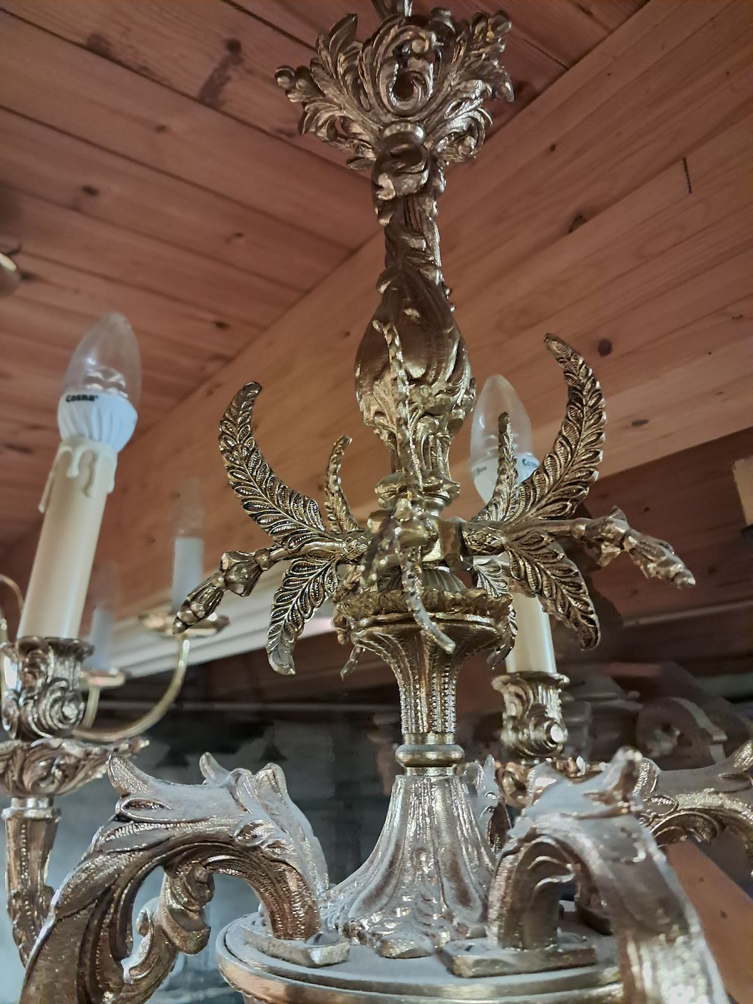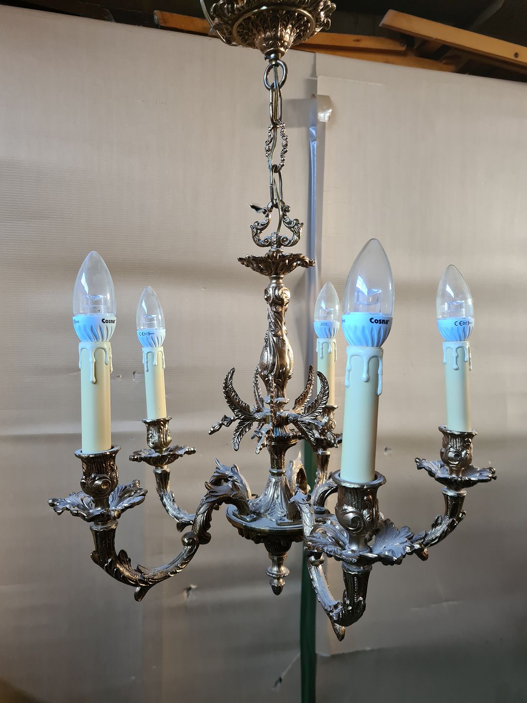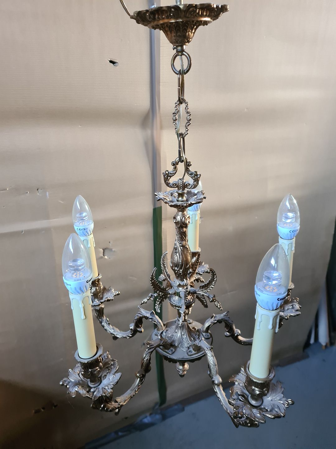 5-Armet lysekrone i metal, fra 1980erne.