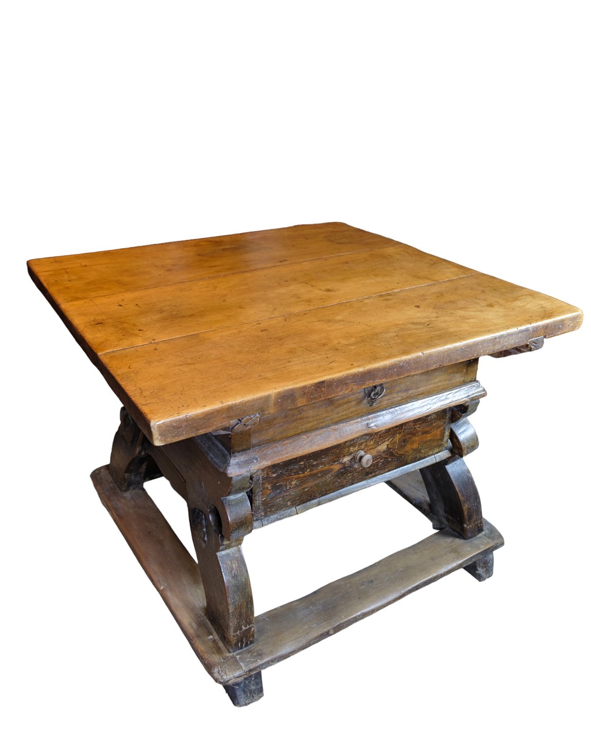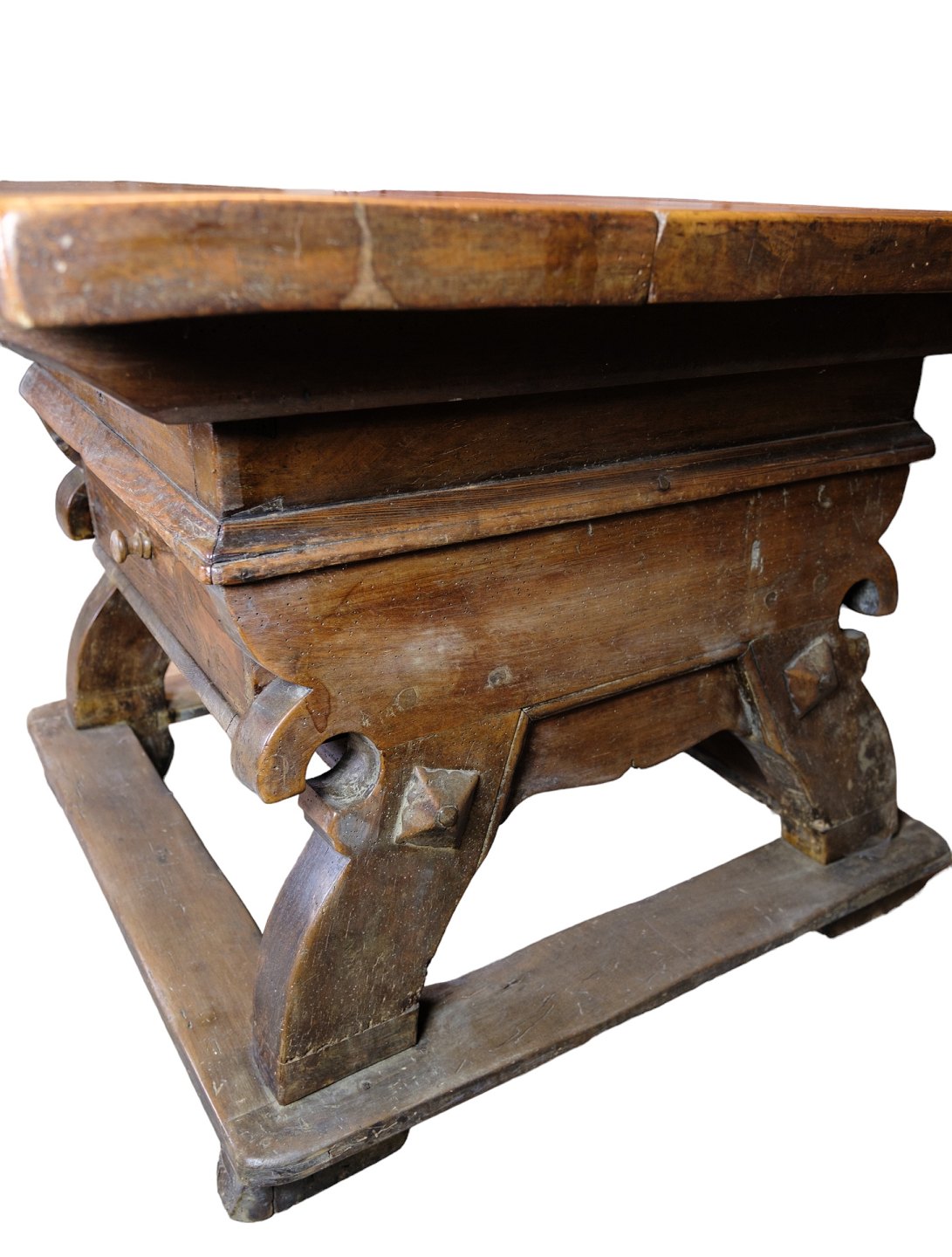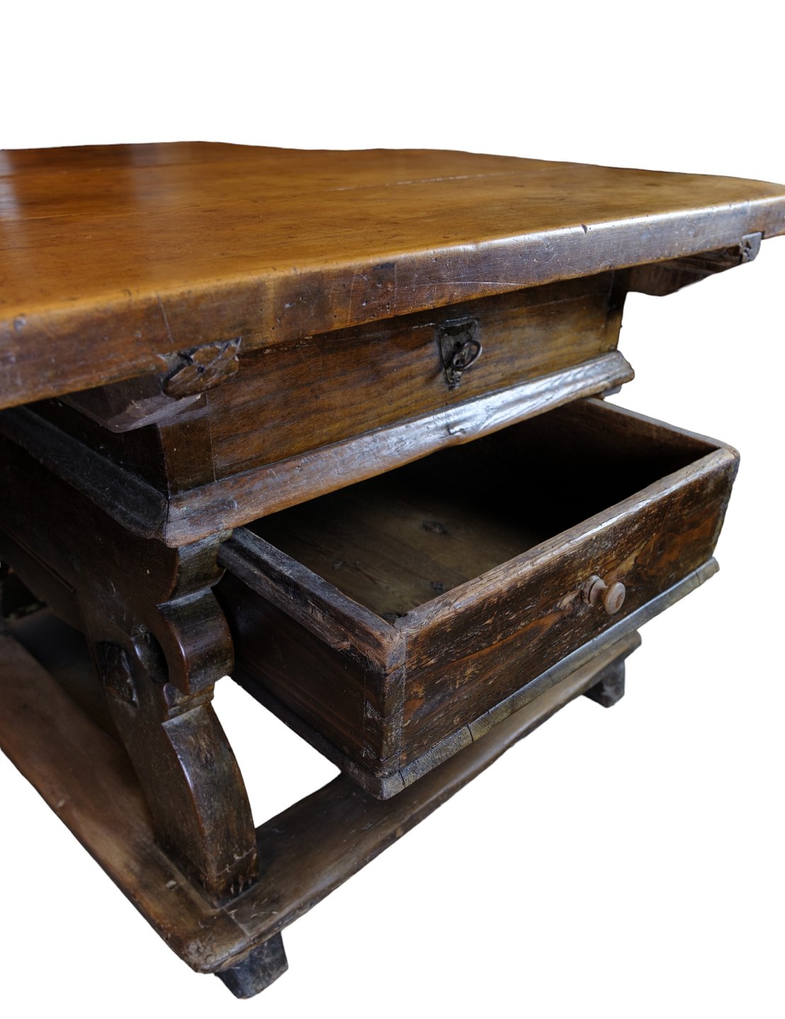 Schweizisk ostebord i egetræ med hemmeligt rum under bordplade skjult af skuffe fra år 1720'erne.