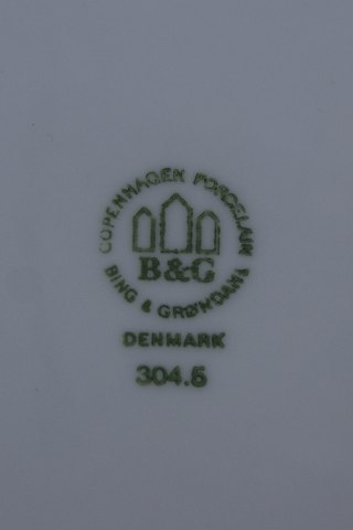 Bing & Grondahl porcelain with hollow edge in a light blue glaze, from Denmark.