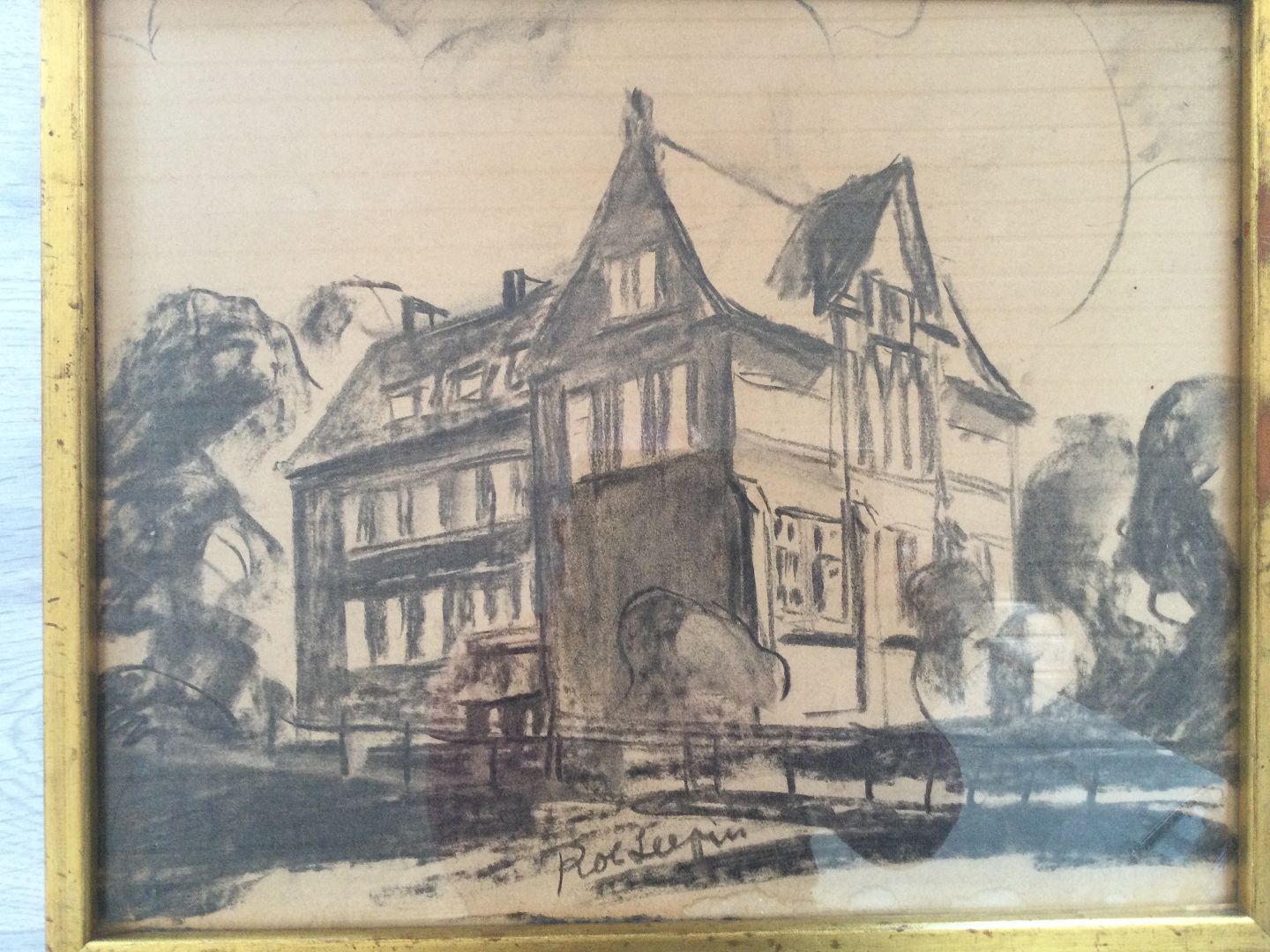 Tegning af Robert Leepin - Stor villa på hjørnegrund.