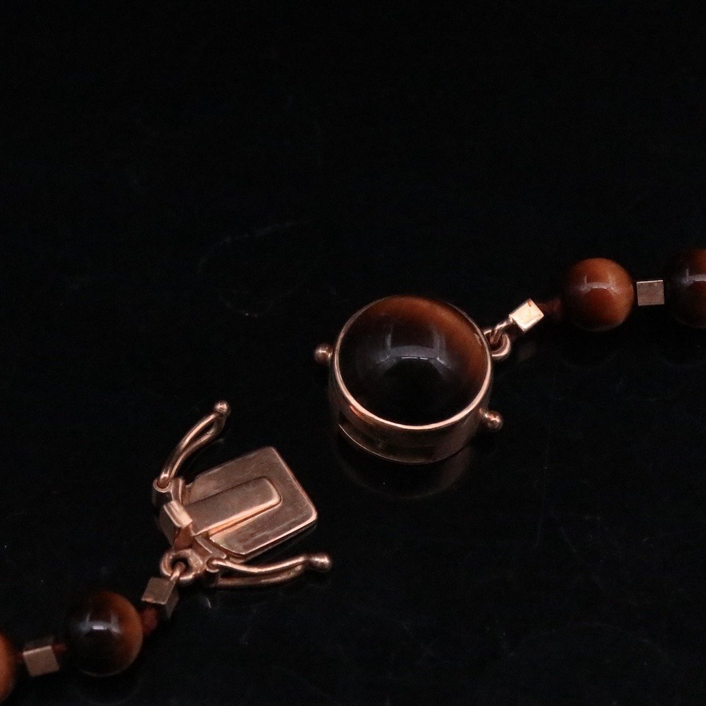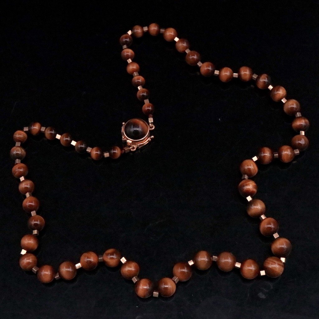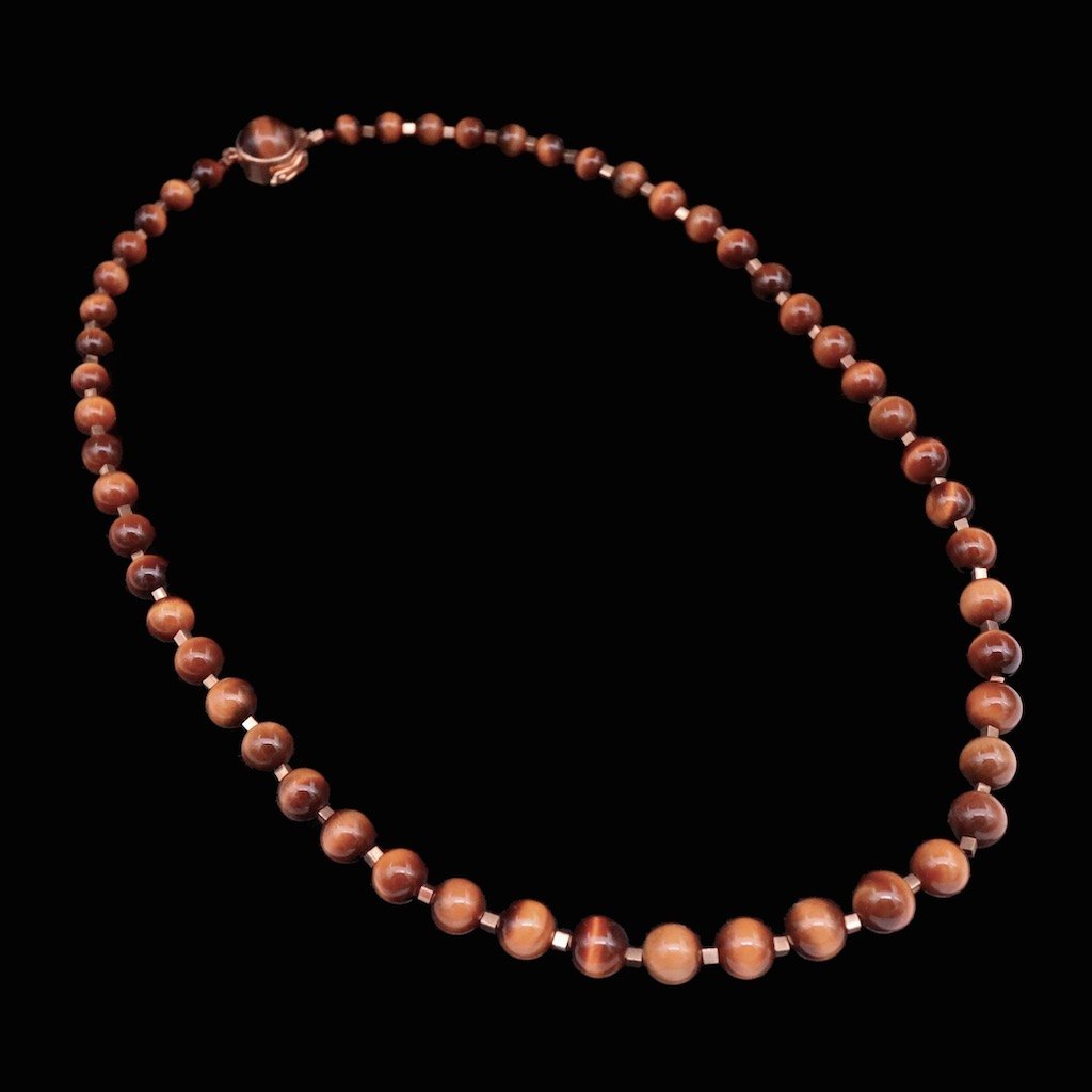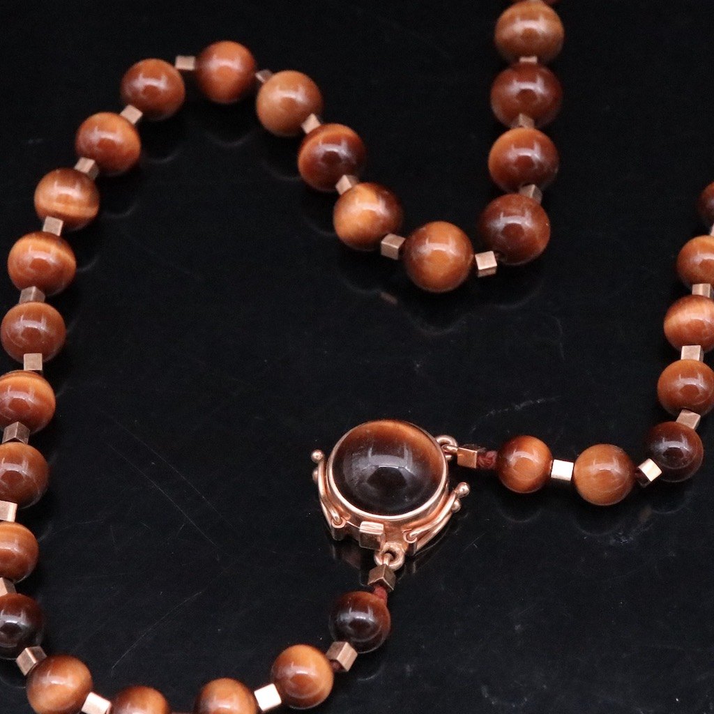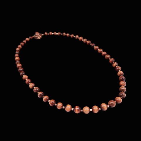 Karen Strand. Tigerøje perlekæde med 18k guld.