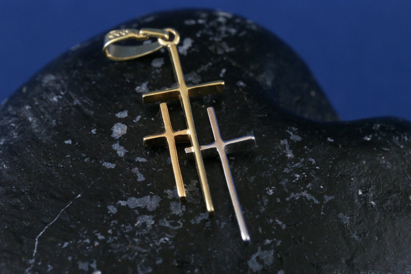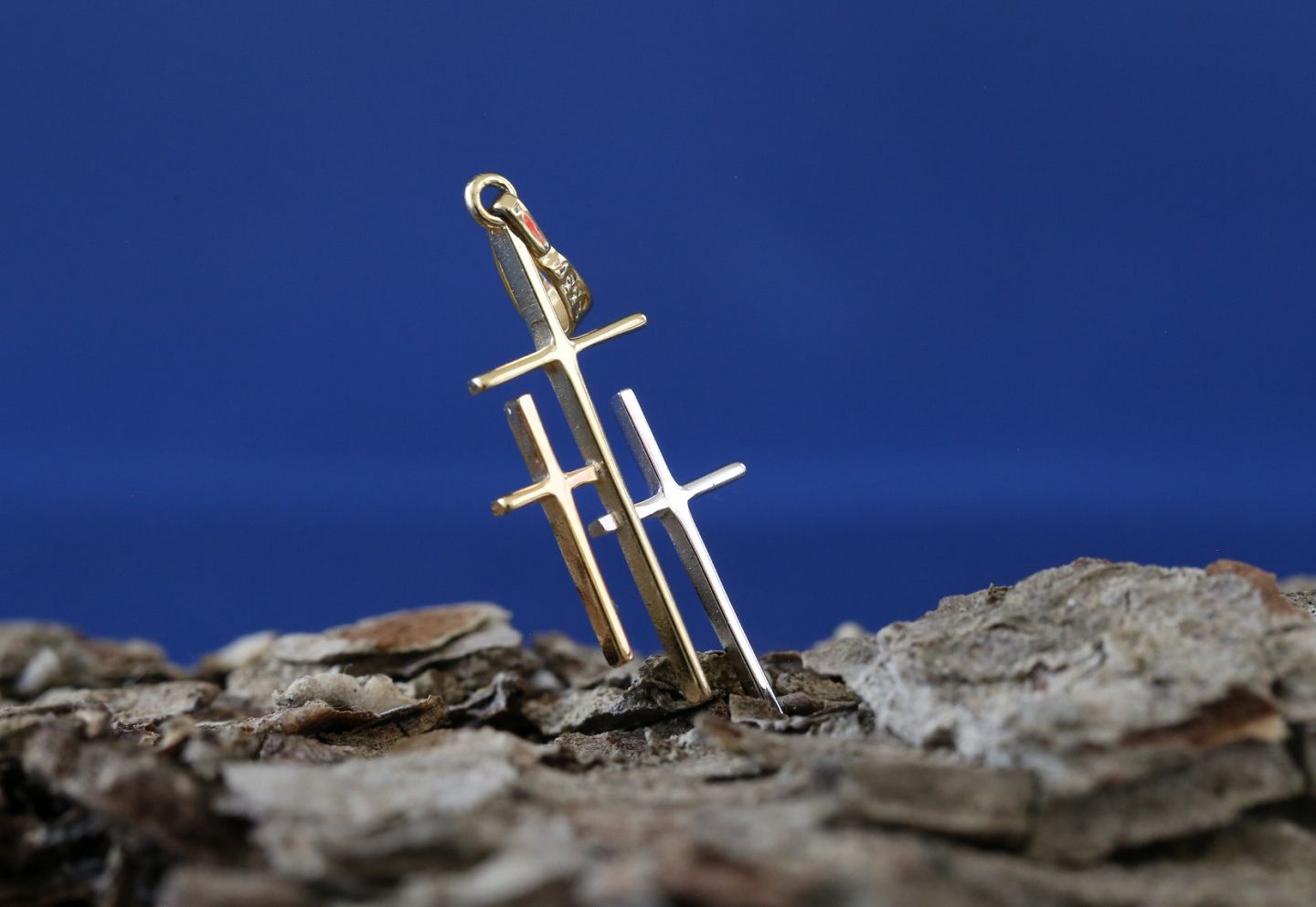 De smukke farvespil mellem guldet, gør dette vedhæng særlig smukt. Det passer ideelt til en tynd guldkæde, og vil være en god gave til enten barnedåb eller konfirmationen.