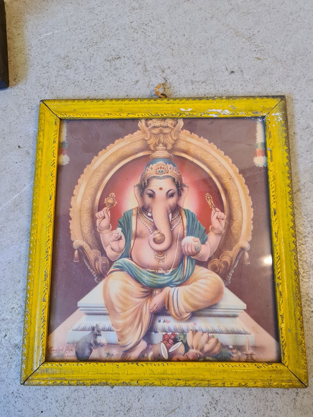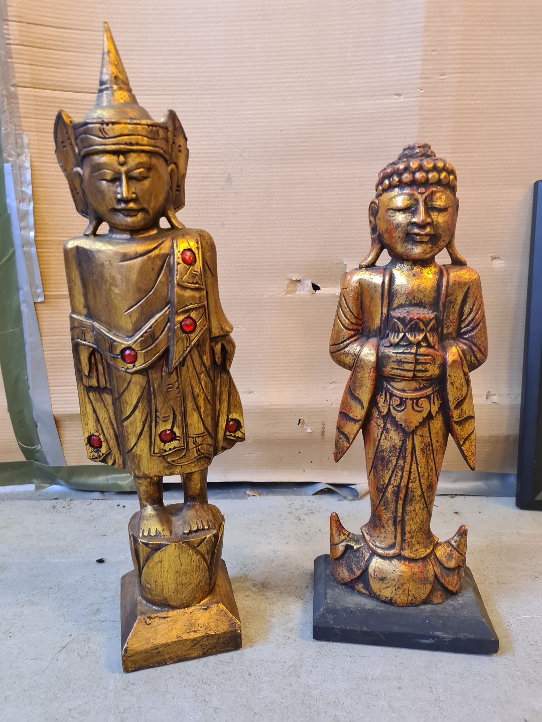 2 Guldmalet Budda figurer og 2 Billeder, fra 12980-1990erne.