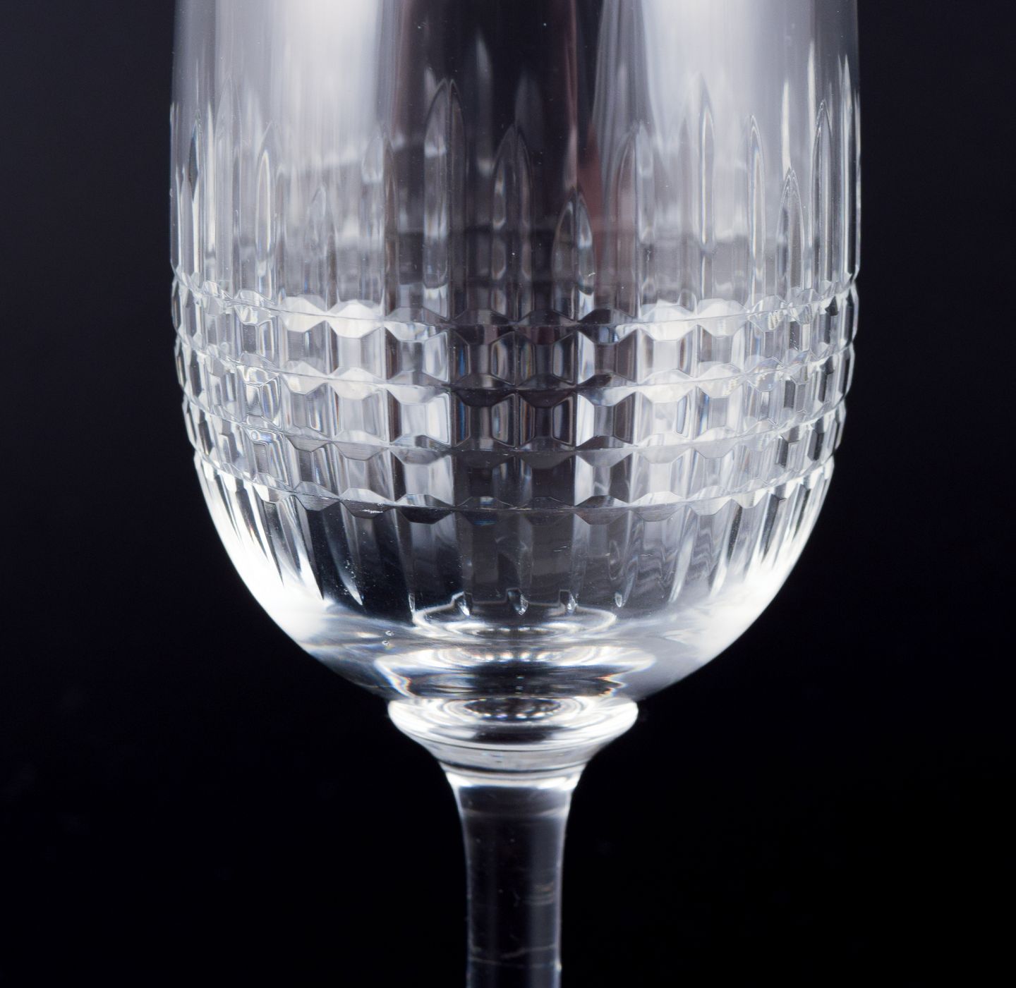 Baccarat, Frankrig. Et sæt på seks ”Nancy” hvidvinsglas i klart krystalglas.