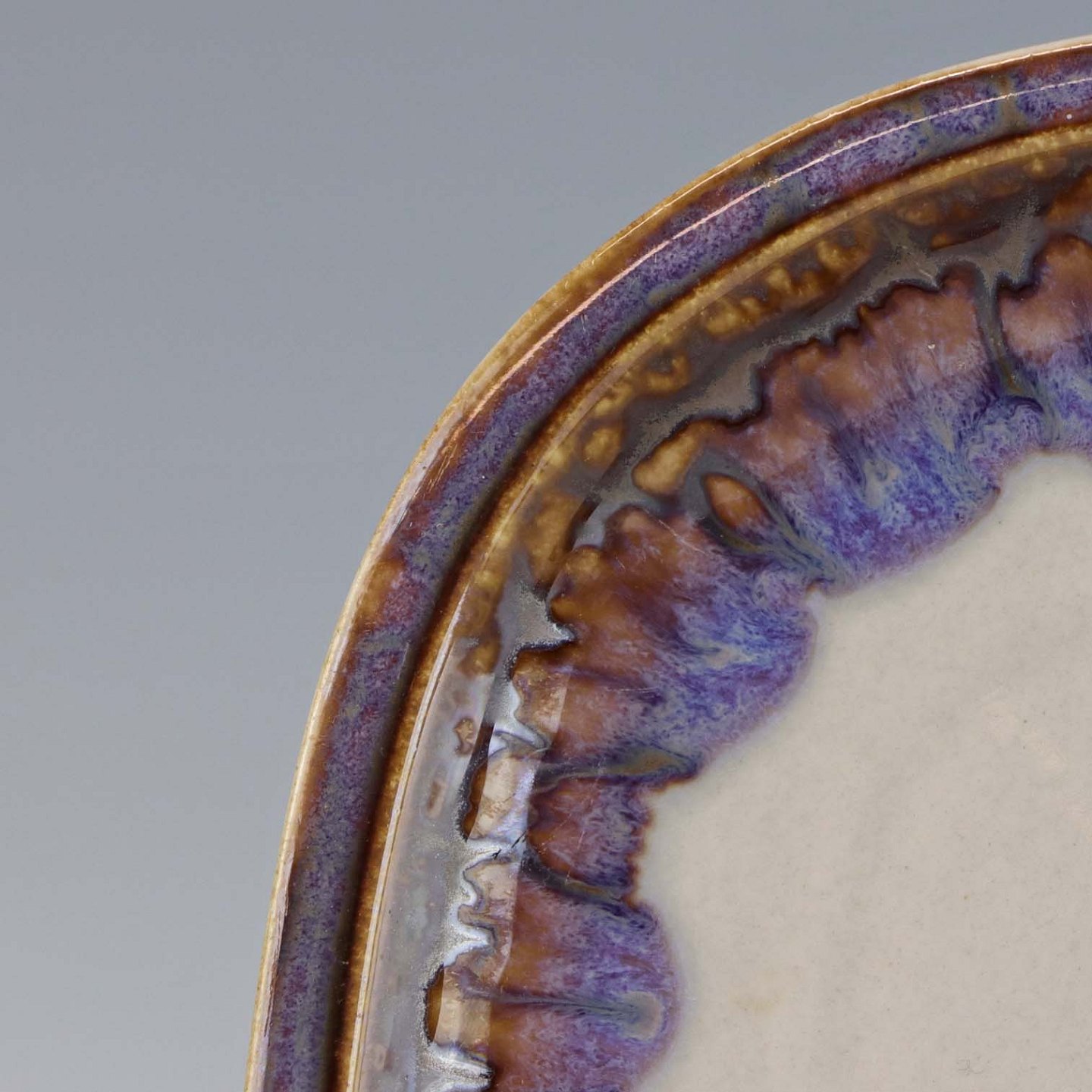 Stellet Mexico er et ovnfast stel dekoreret med marmoreret glasur, i brune og blå farver, så det ser ud til kanten er brændt.