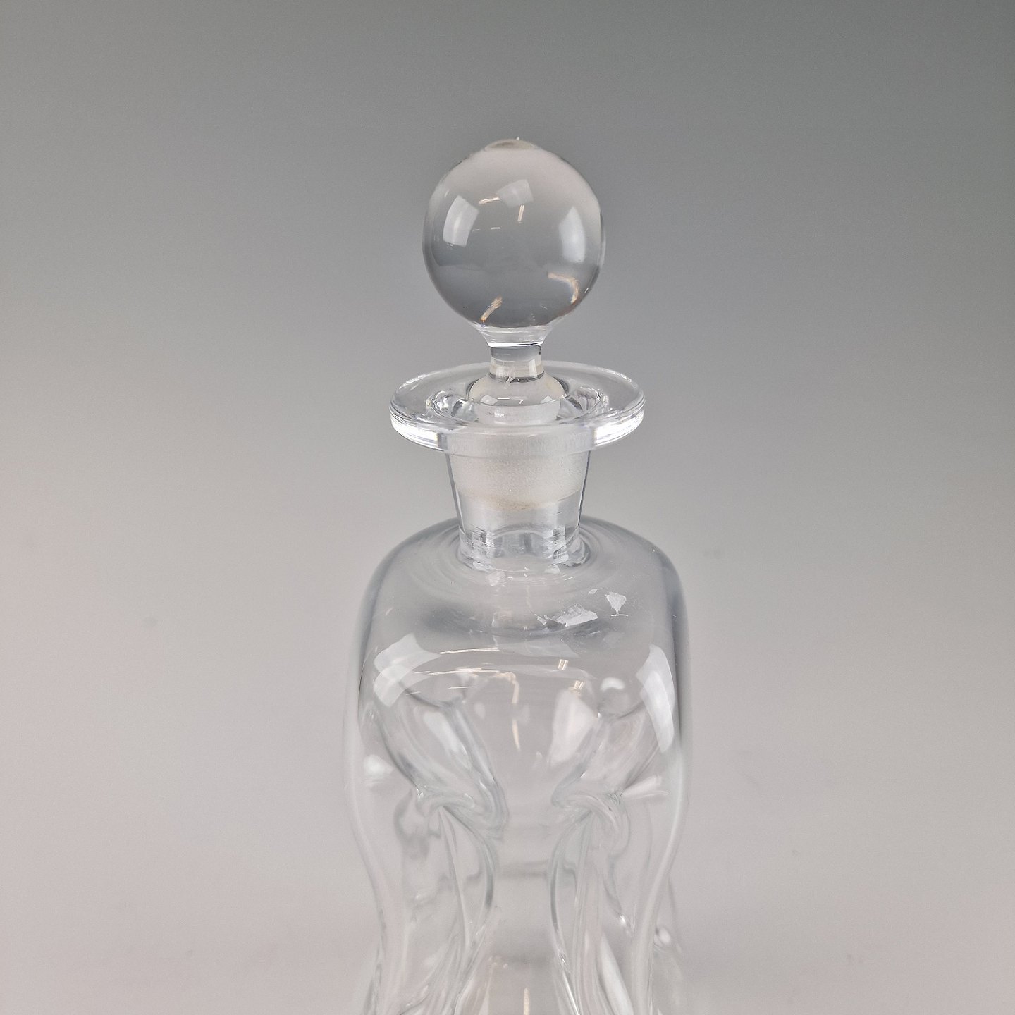Den ikoniske klukflaske i mundblæst klart glas og med kugleformet glasprop