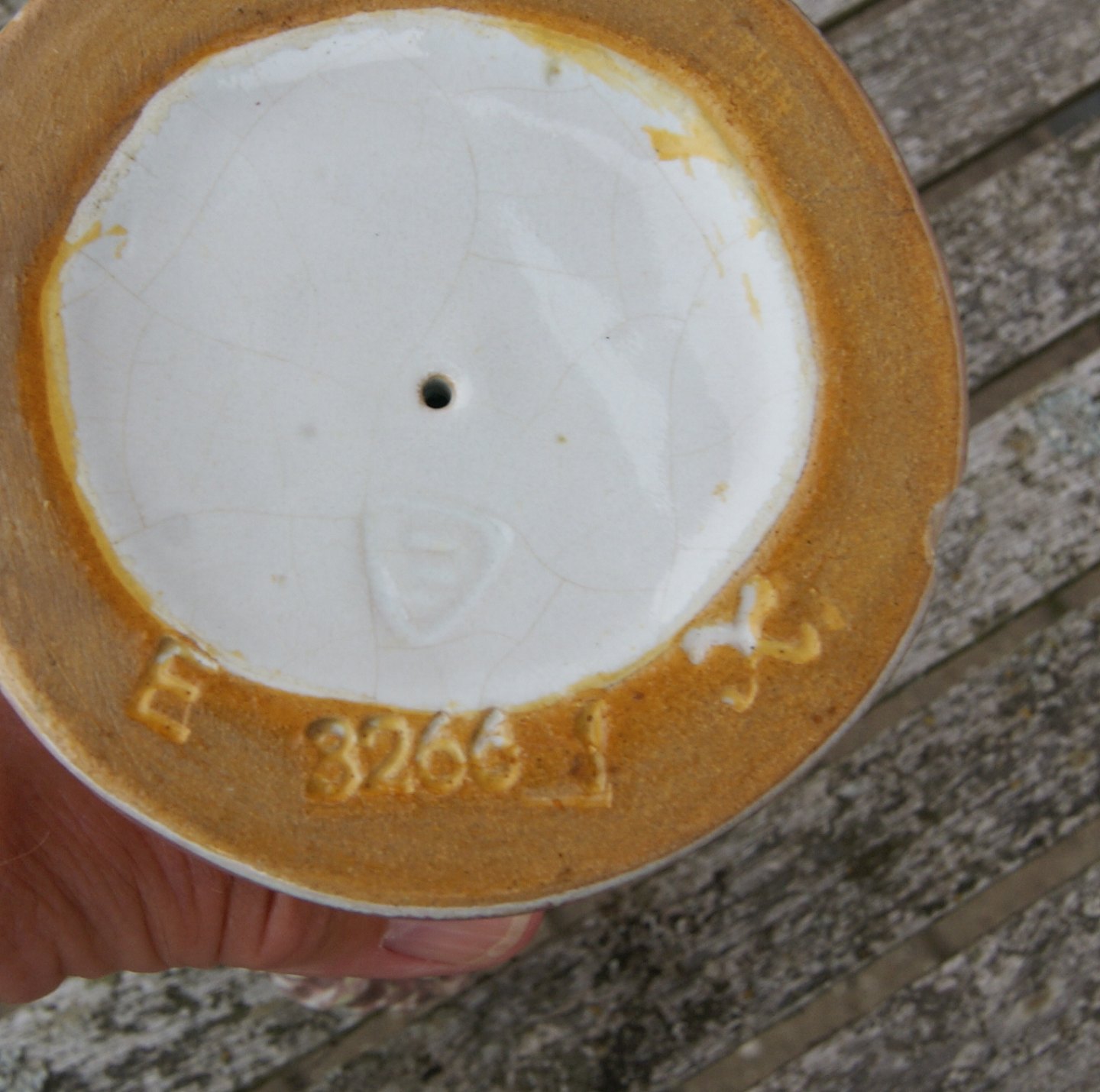 Michael Andersen keramik, Bornholm. Nøgen dreng med trompet, samt med skår på den lave sokkel