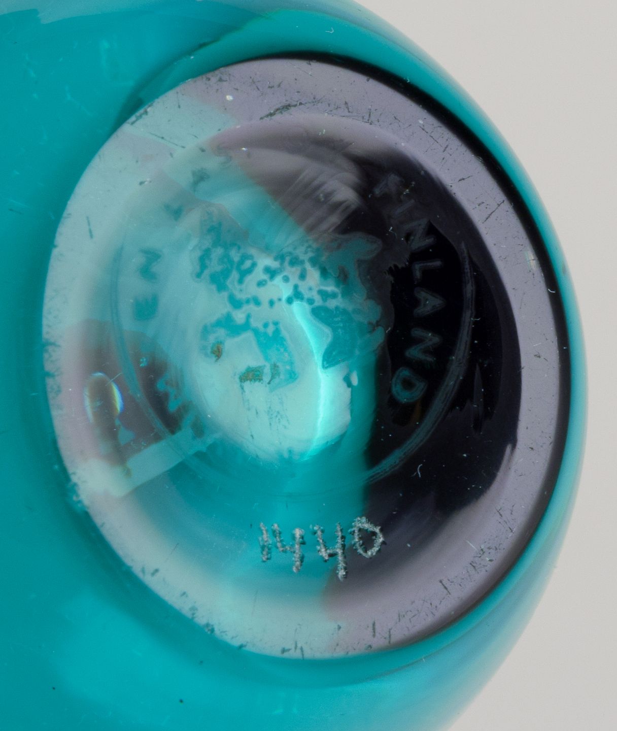 Tamara Aladin (1932-2019) for Riihimäen Lasi, Finland. Kunstglasvase i turkis.