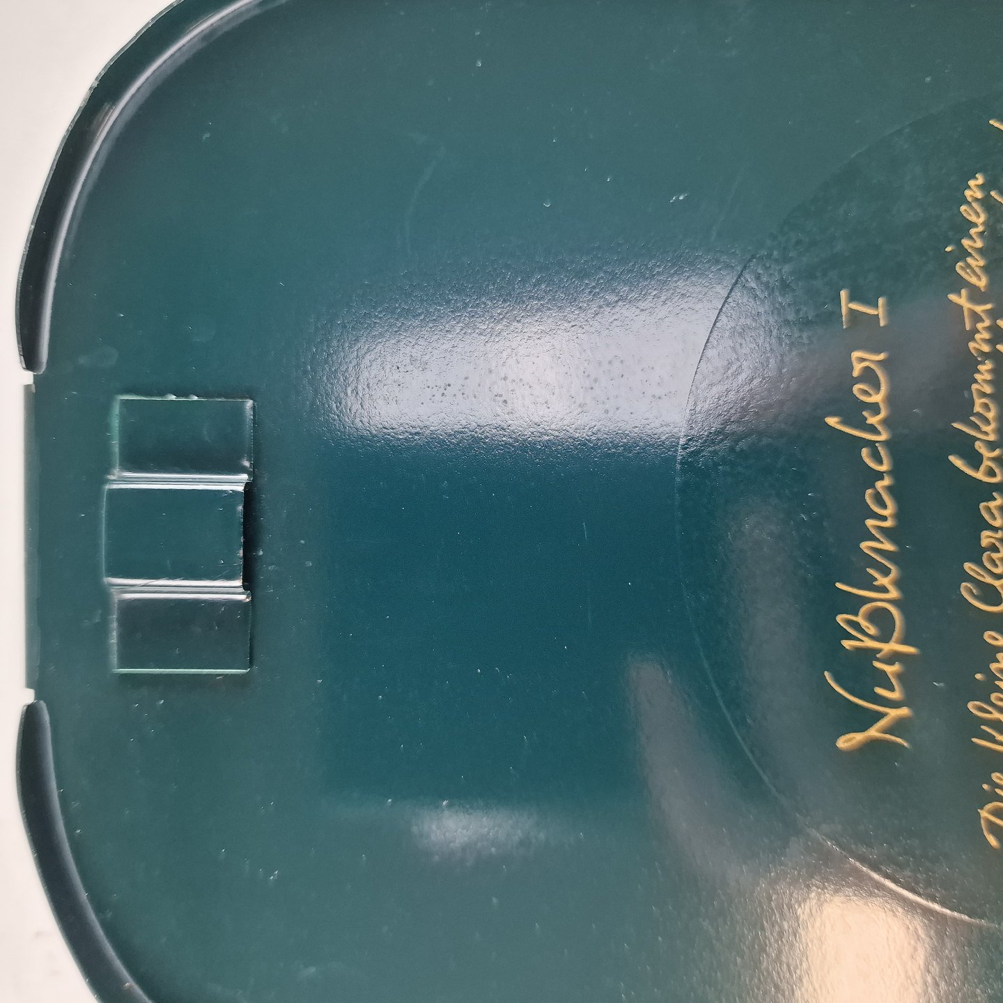 Sjælden glasplatte-serie lagt i farver under beskyttende metalbaggrund. Forestiller eventyret "Nøddeknækkeren" hvor Clara sidder med nøddeknækkeren