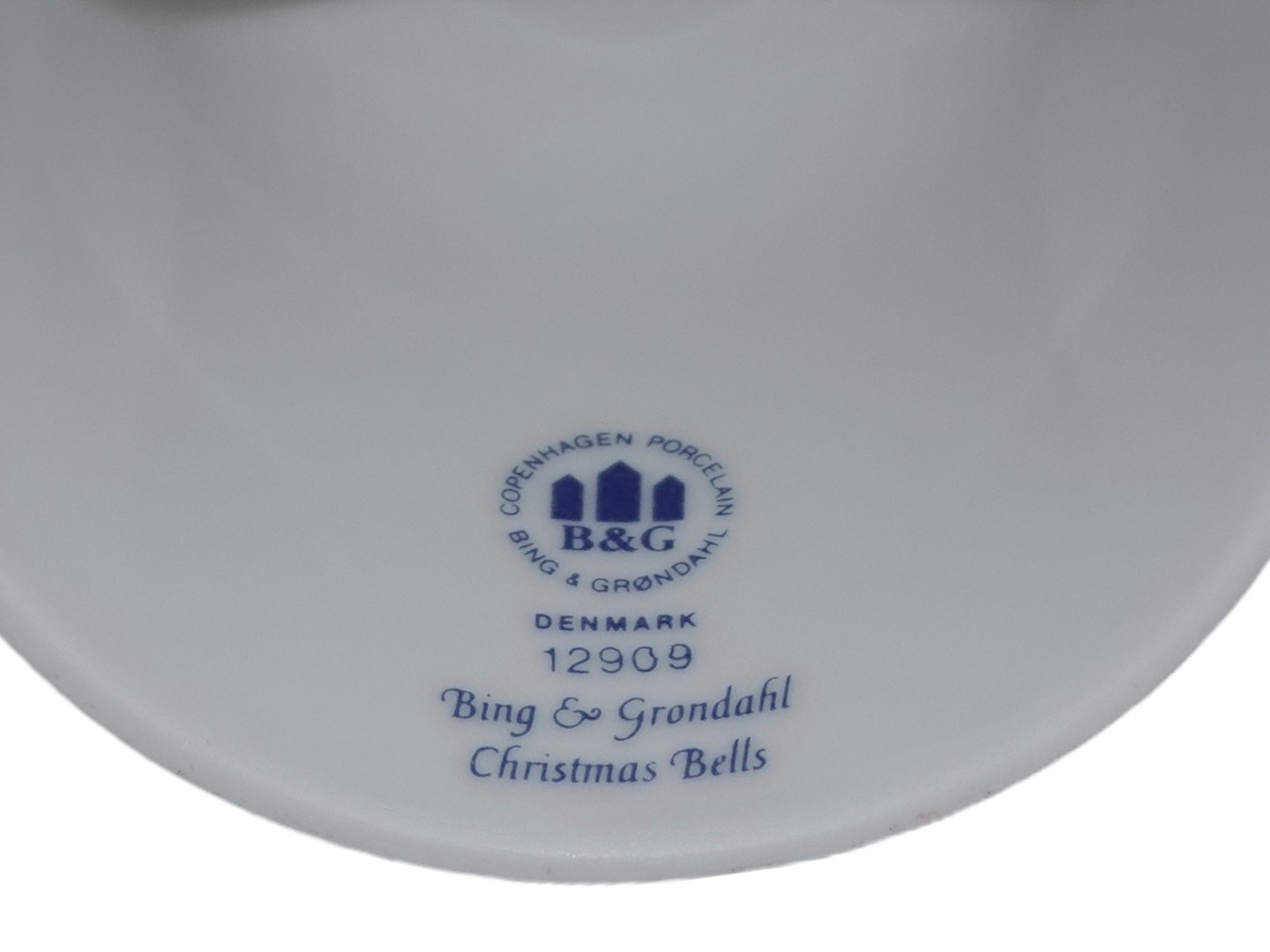 Bing & Grøndahl lille Juleklokke / julepynt med 1909 Juleplatte motiv.
