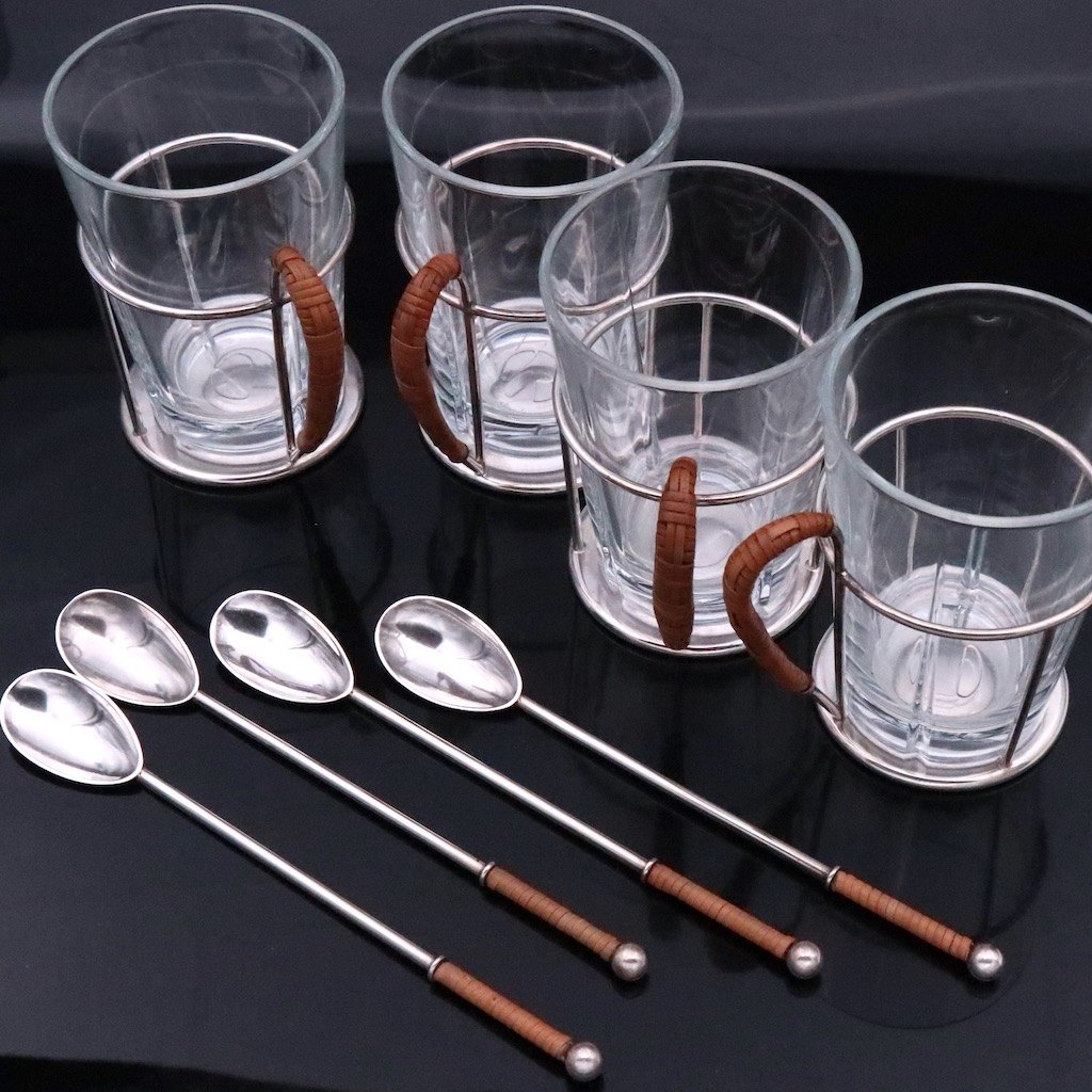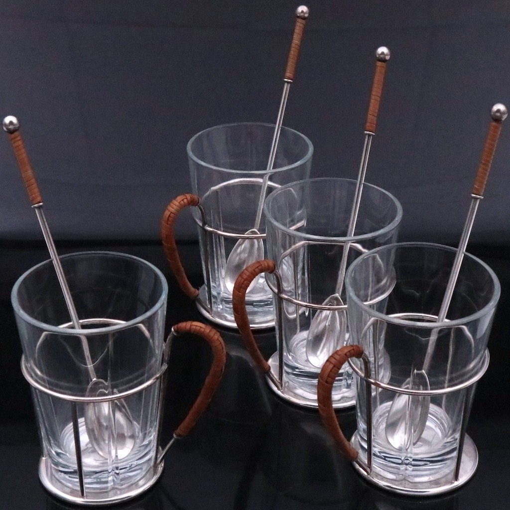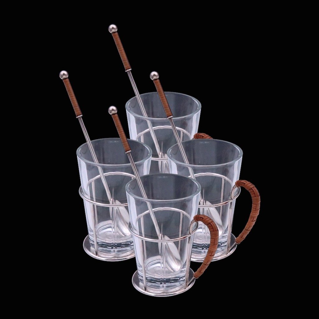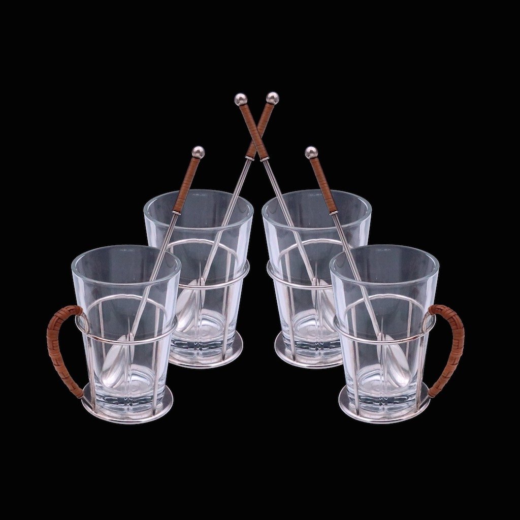 Svend Weihrauch. Set of four Sterling Silver Toddy Glass Holders with Spoons.