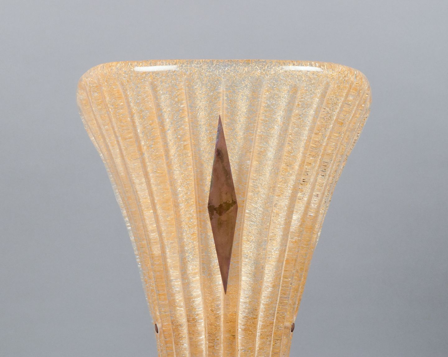 Barovier & Toso, Venice. Large wall lamp in fluted mouth-blown art glass and brass. Clear mouth-blown glass with "gold dust" inlay.