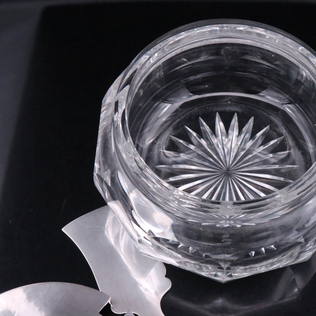 Hans Hansen. Krukke i glas med låg og skovl i sterlingsølv.