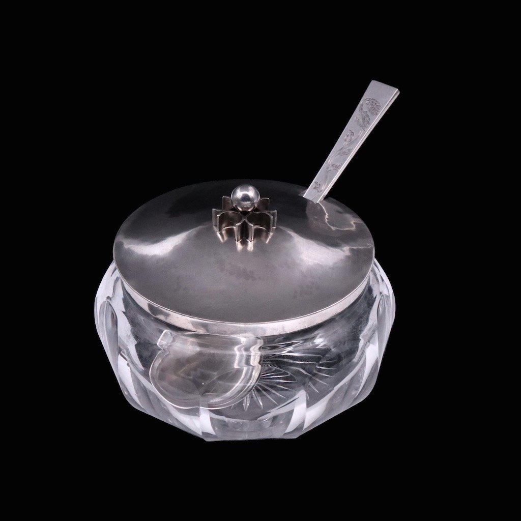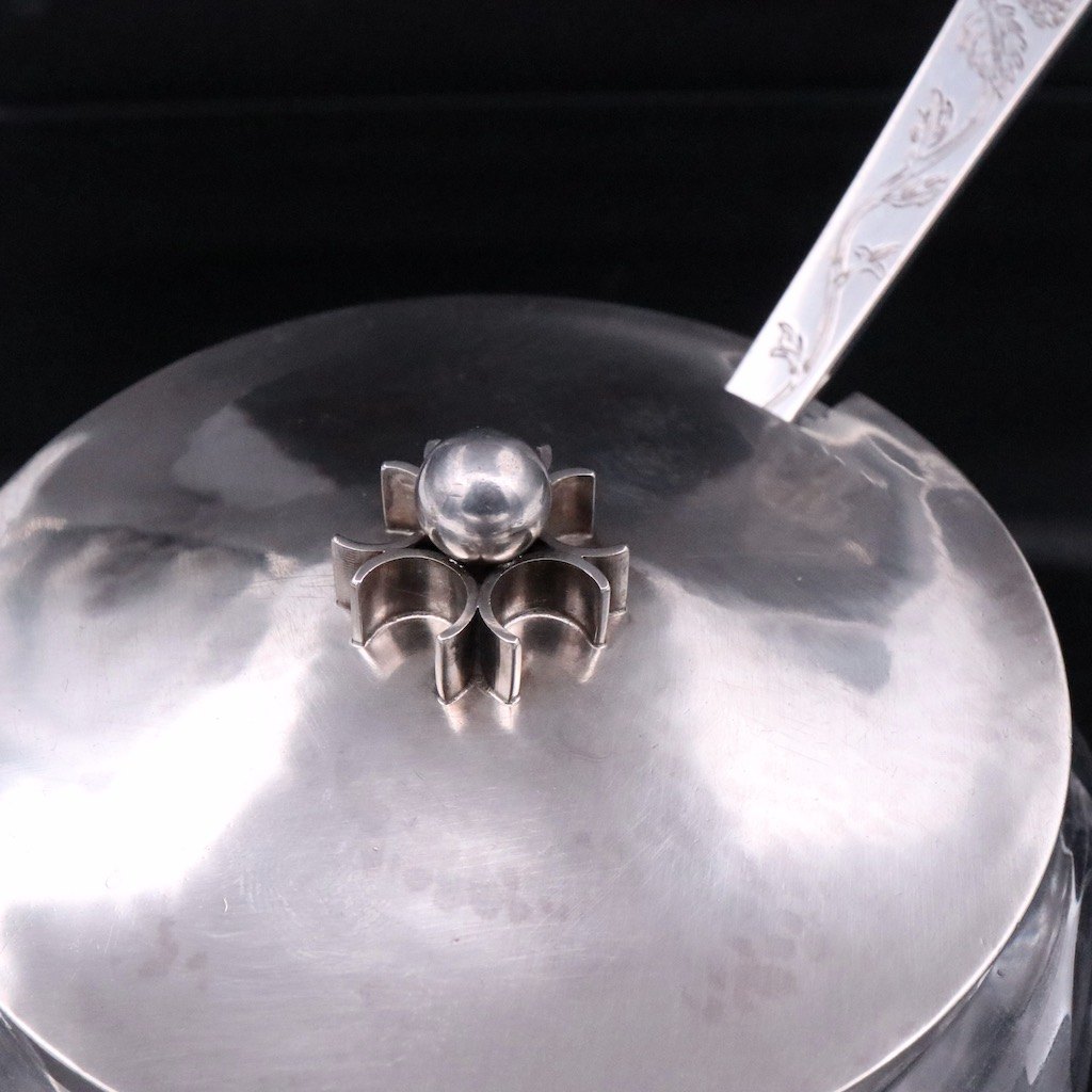 Hans Hansen. Glass Jar with Sterling Silver Lid & Spoon - 1934.