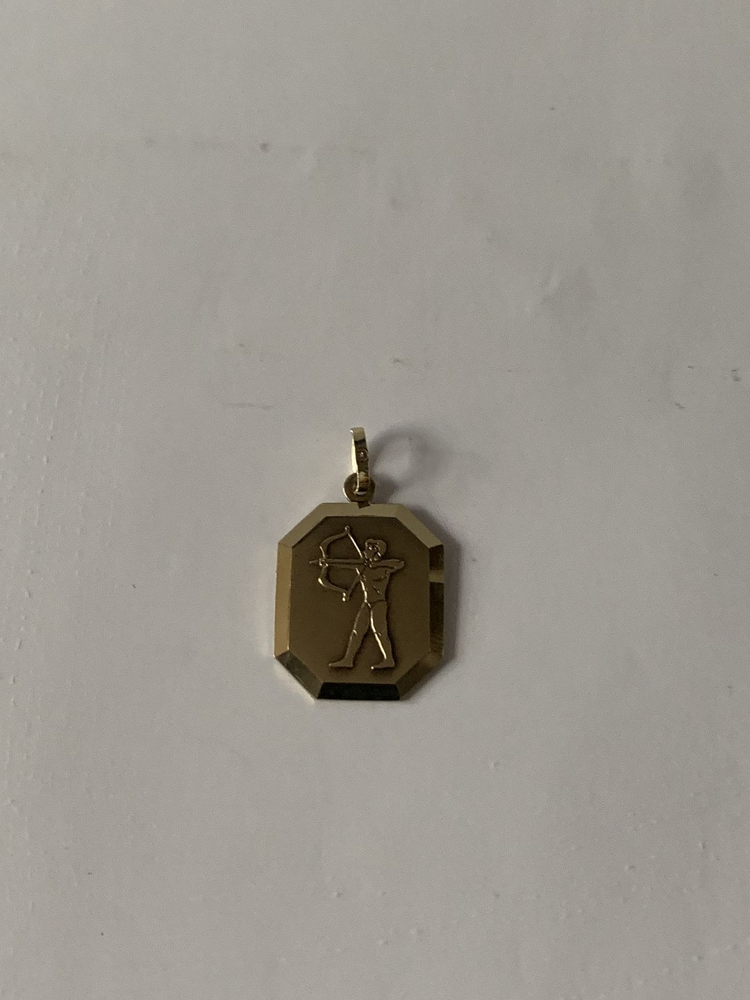 Smukt vedhæng i 14 karat guld, med motiv Skytte. Til halskæde eller armbånd.