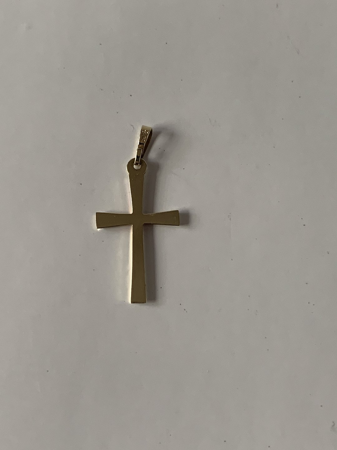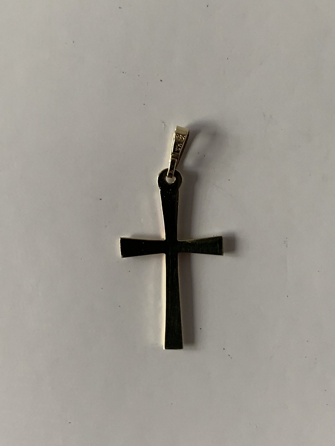 Smukt klassisk guldkors i 14 karat guld, stemplet 585 HS, til kæde.