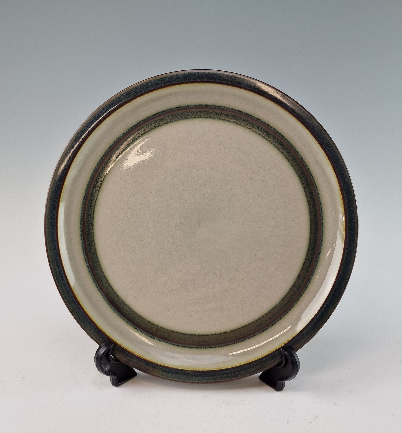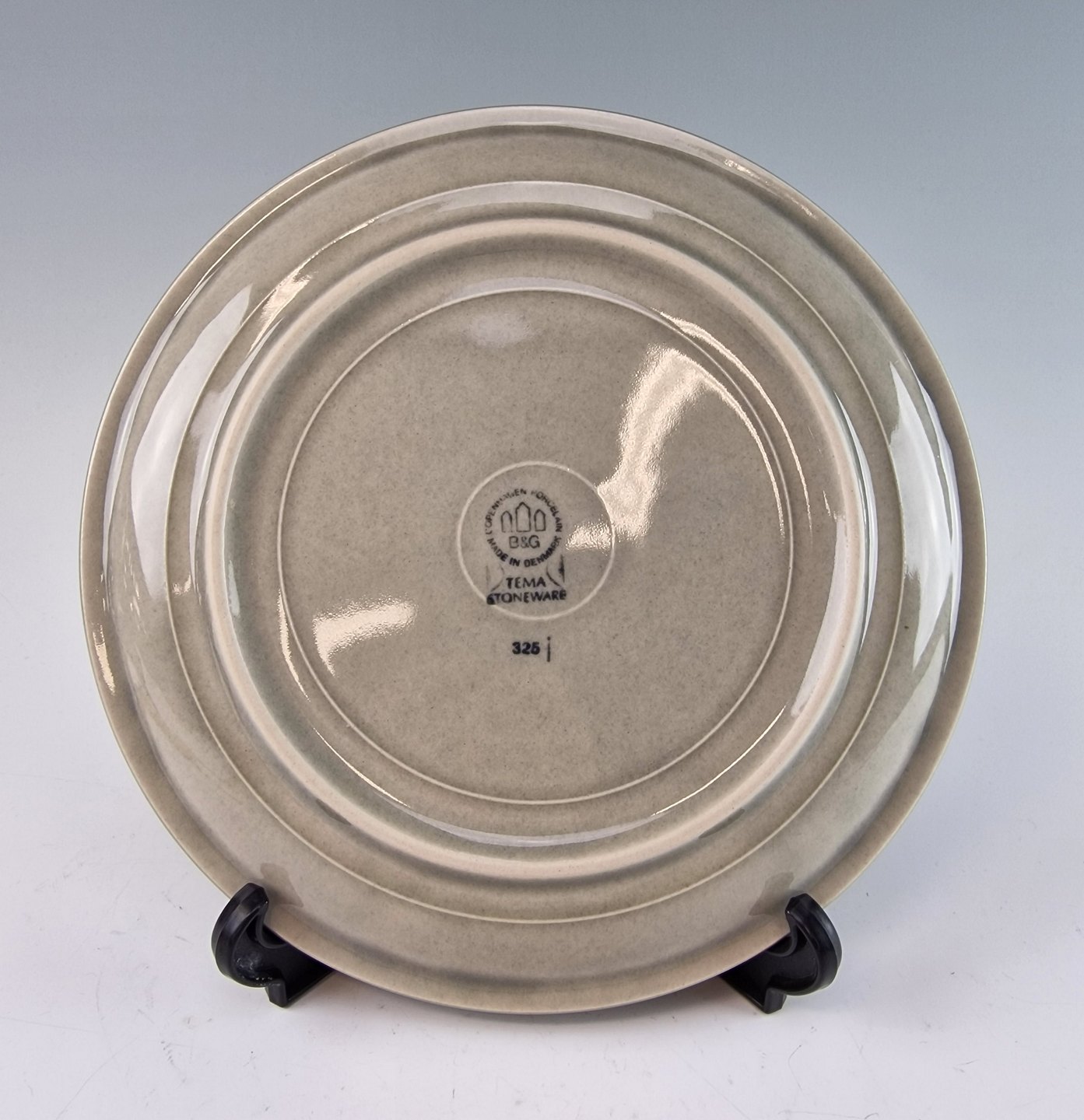 Stellet Tema er af stentøj, glaseret med lys grå og dekoreret med kanter af grønne og brune farver