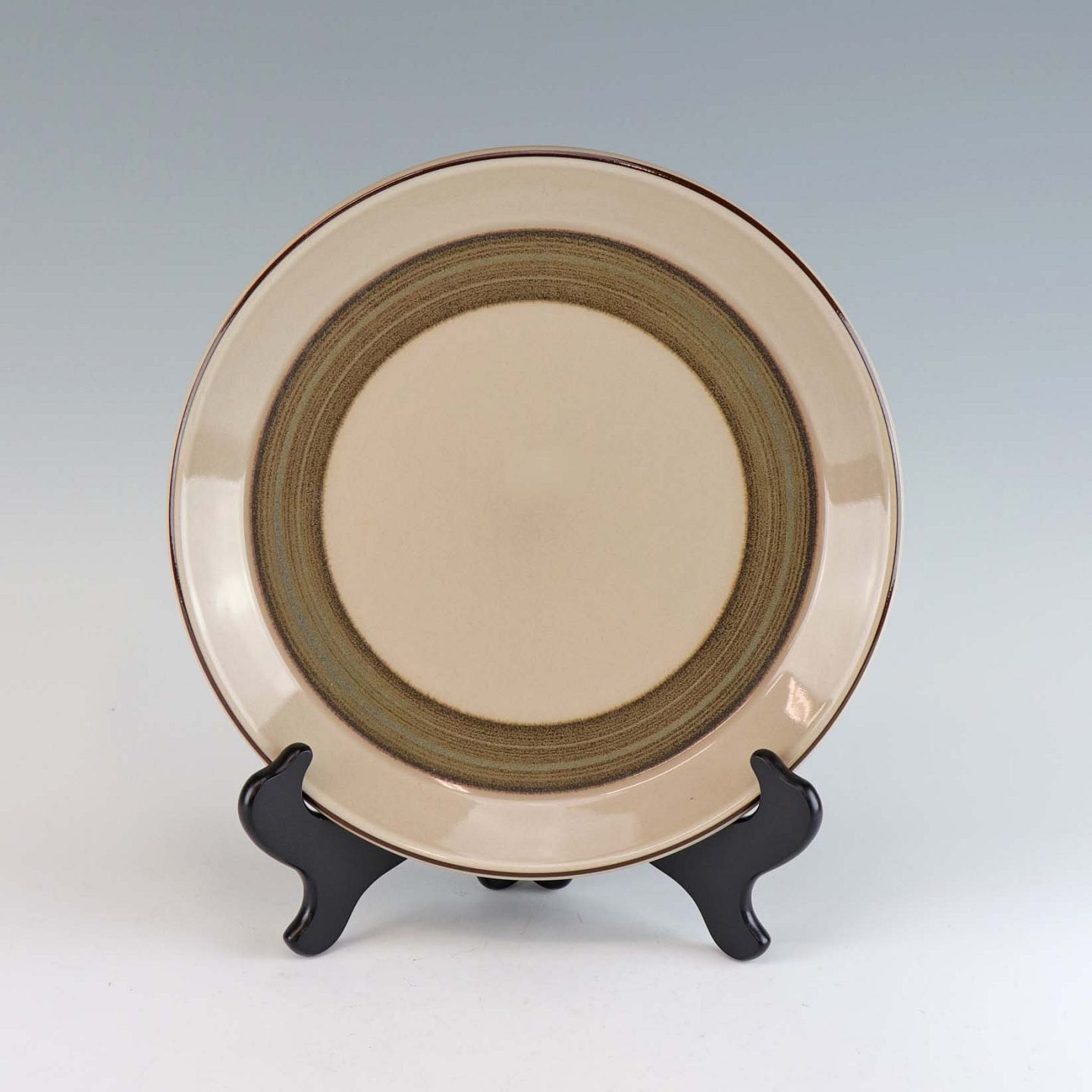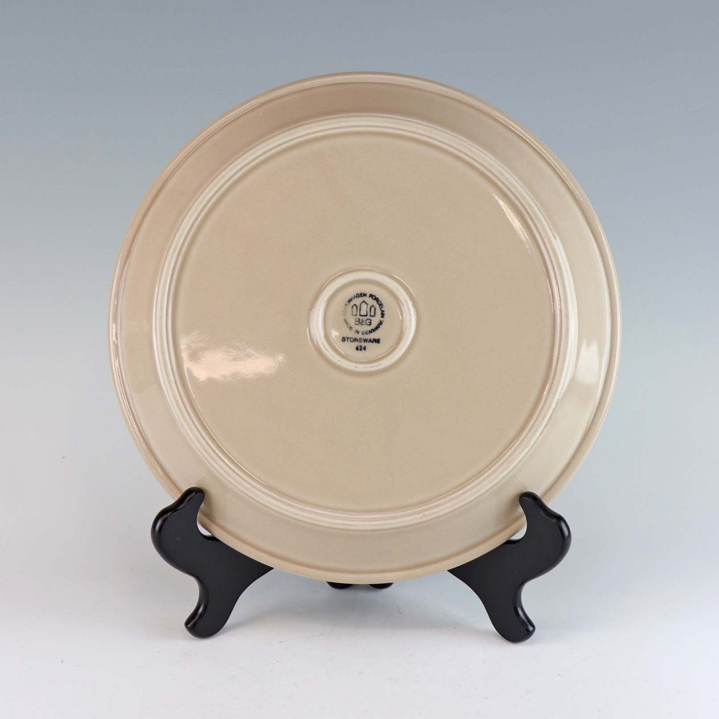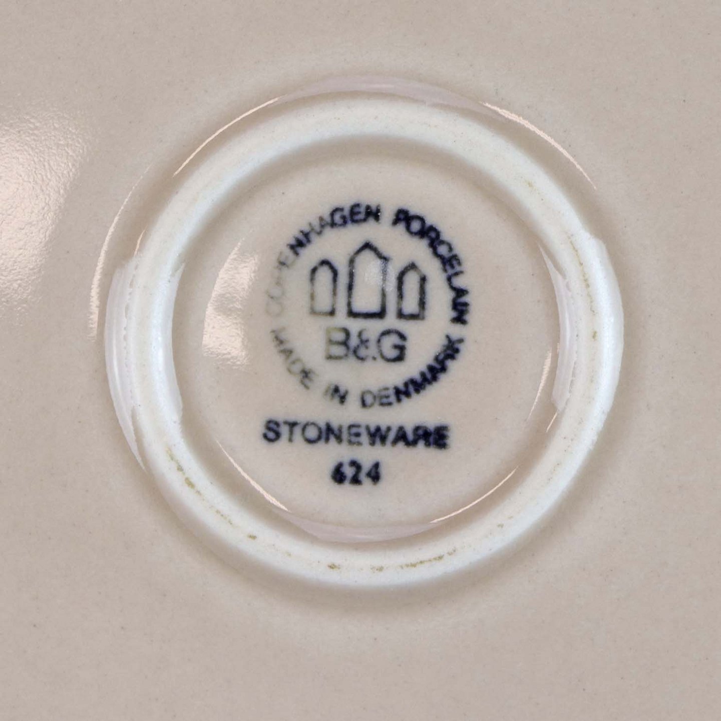 Stellet Peru er af stentøj, glaseret med lys grå farve og dekoreret med bånd af grøn/brunlige farve