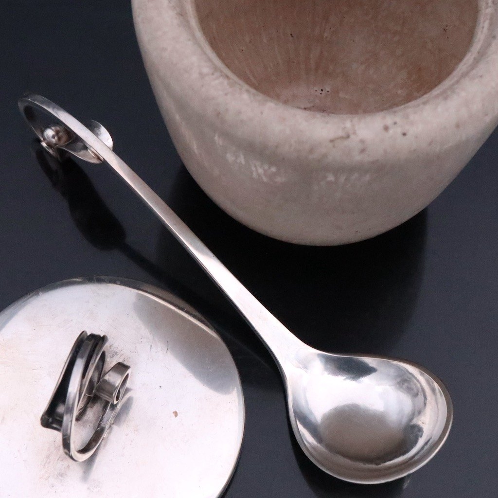 Arne Bang - Bernhard Hertz. Stoneware Jar with Silver Lid and Spoon.