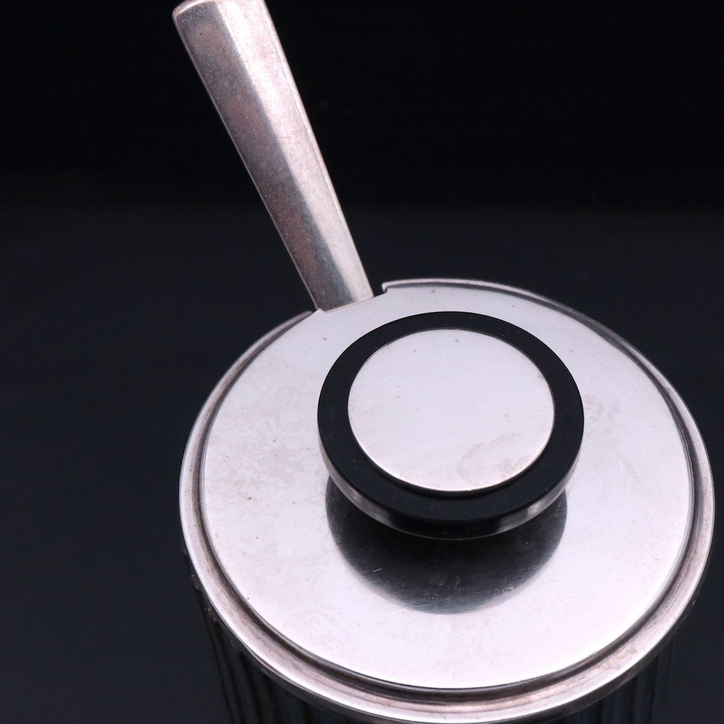 Sterling Silver Lid and Spoon designed by Svend Weihrauch (1899-1962) and crafted by F. Hingelberg in Aarhus, Denmark in 1935.