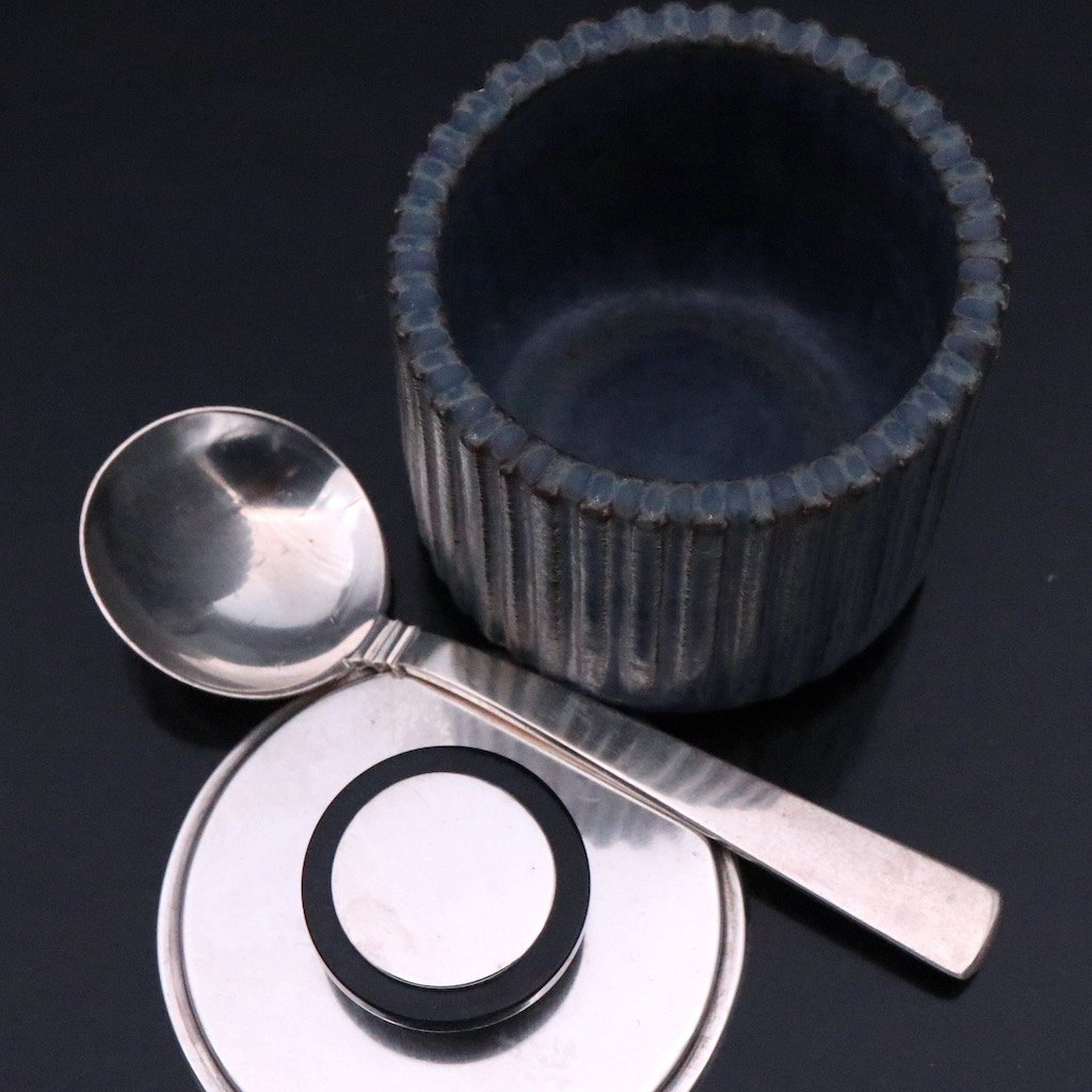 Arne Bang - F. Hingelberg. Stoneware Jar with Sterling Silver Lid and Spoon - 1935.