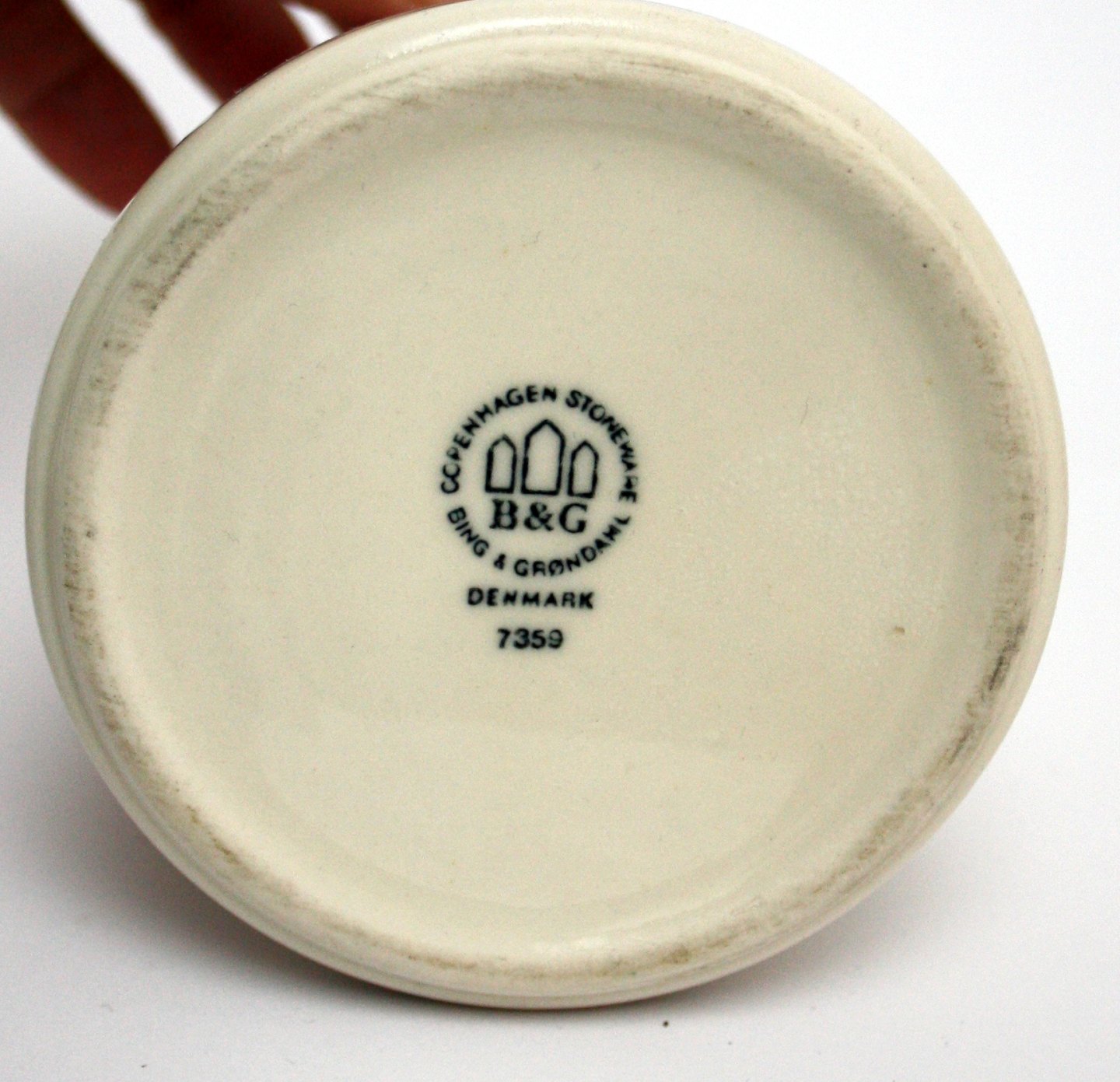 Bing & Grøndahl, Stoneware, Kegleformet vase med striber. Nr. 7359. Højde 19 cm. Pris: 450 kr.