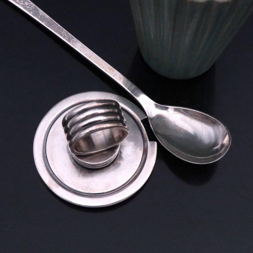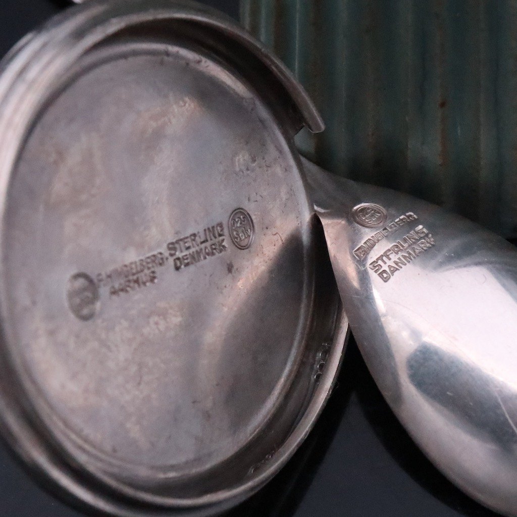 Låg samt ske i sterling sølv designet af Svend Weihrauch (1899-1962) og udført hos F. Hingelberg in Aarhus, Denmark.