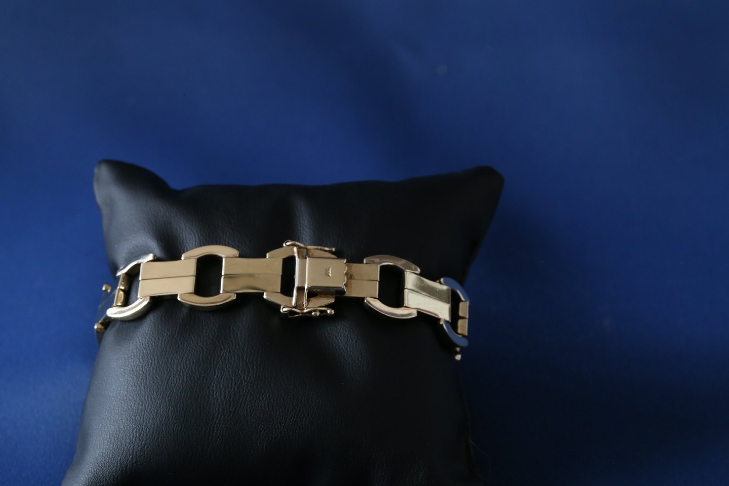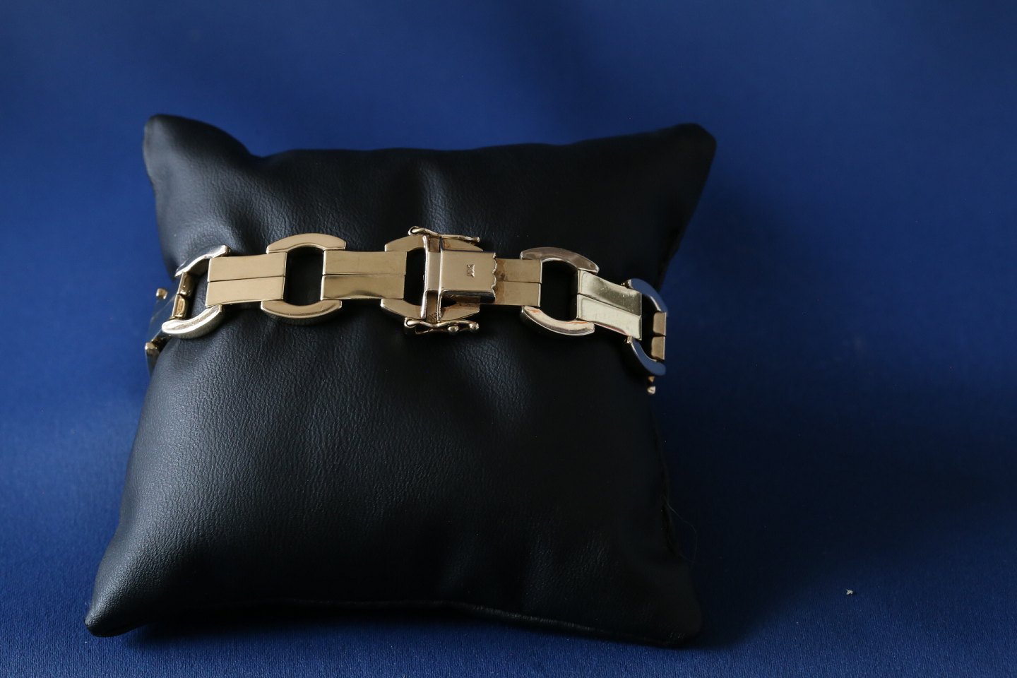 Dette flotte guldarmbånd er flot udført, med solid opbygning og smuk struktur. Armbåndet er simpelt opbygget med store led, hvilket gør det let at bære, uden det hiver fat i tøjet. Armbåndet vil være flot til nærmest hvilken som helst påklædning. Samtidig er et guldsmykke en god investering i guld.