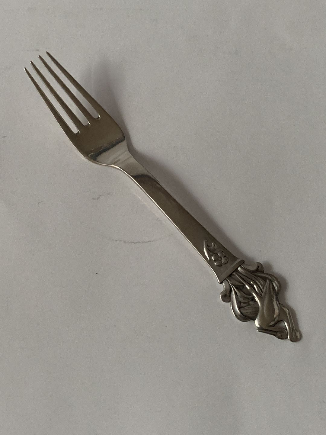 Beautiful children's fork in genuine 3-tower silver, which can be given as a christening gift to the little newborn. The fork has a nice motif of swans, at the top of the shaft. This makes this fork beautiful and decorative.